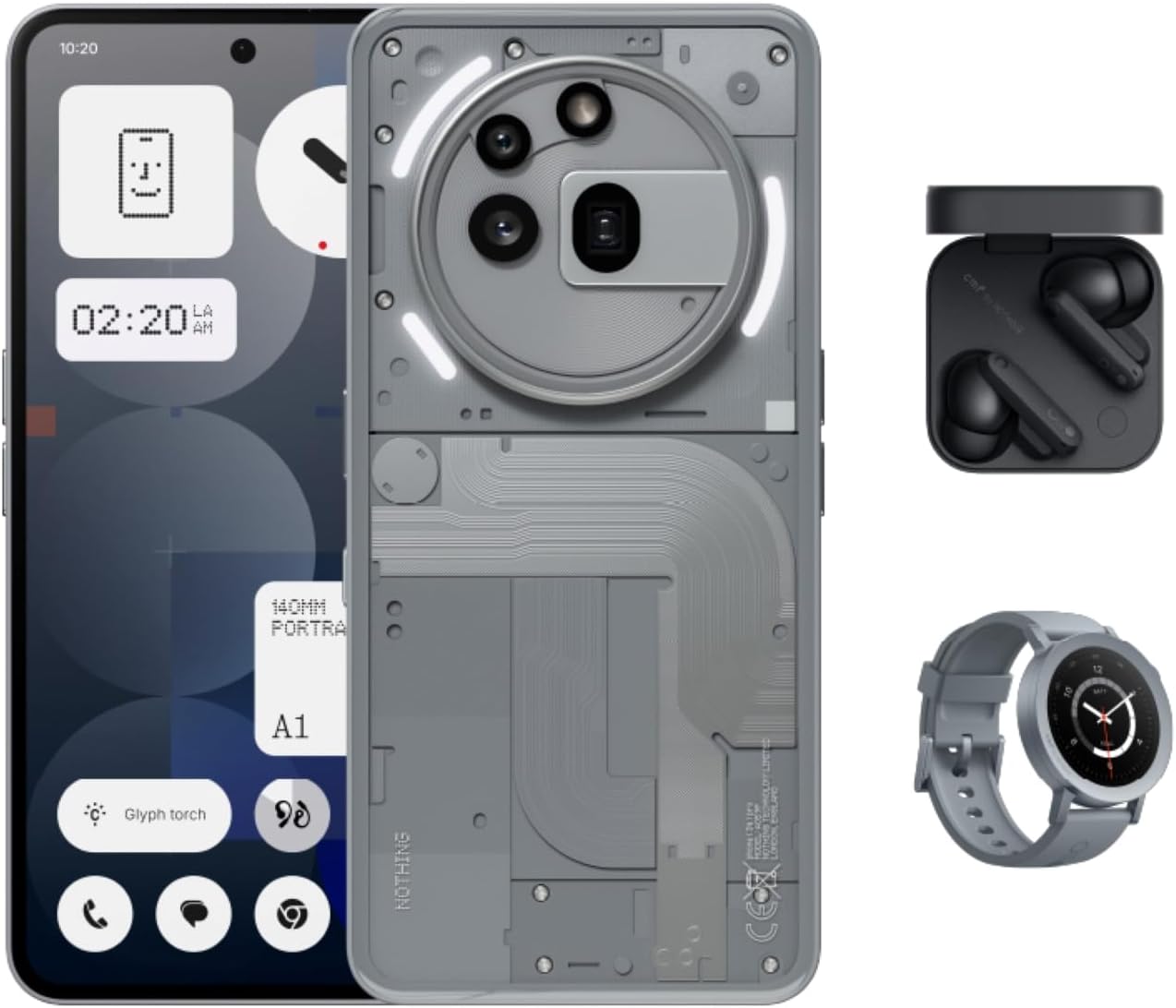 لا شيء هاتف (3a) برو 12 جيجا + 256 جيجا، ابيض، مع حزمة، اموليد، 1 بي، 120 هرتز، HDR10+