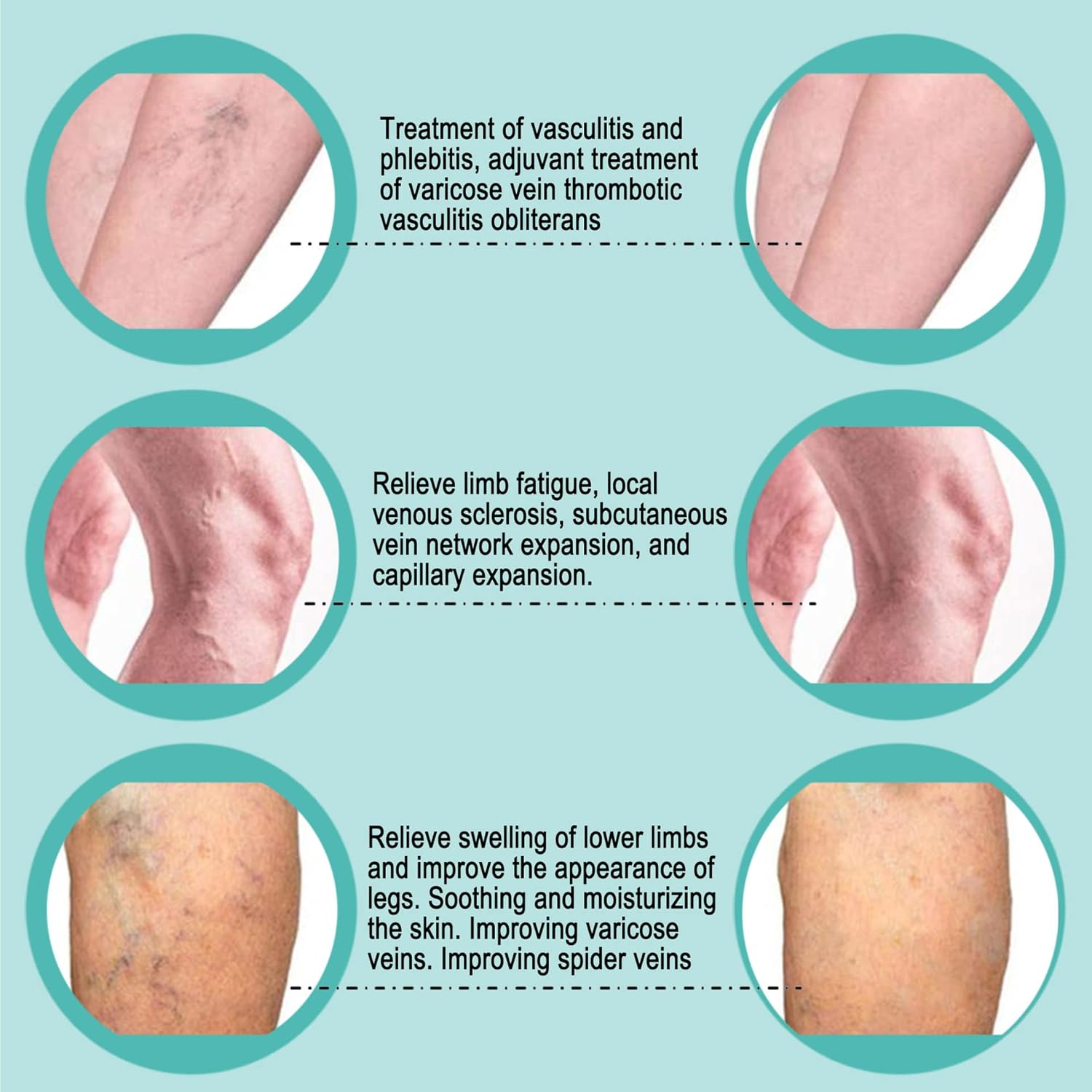 يخفف من إجهاد الأطراف والتصلب الوريدي الموضعي وتوسيع شبكة الأوردة تحت الجلد وتمدد الشعيرات الدموية.