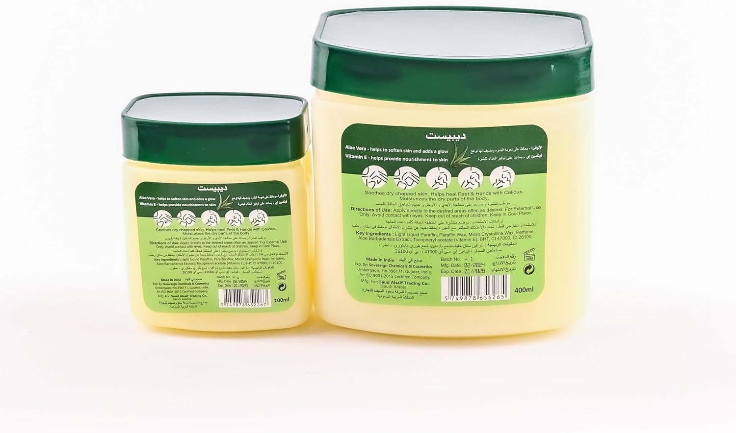 ديبيست الجيلي العشبي غني بفوائد الصبار وفيتامين E. تم تصميم هذا المرطب متعدد الاستخدامات لتعزيز التوهج الطبيعي لبشرتك مع تعزيز ثقتك بنفسك. مناسب لجميع أنواع البشرة، فهو يوفر ترطيبًا أساسيًا لكل من وجهك وجسمك، مما يضمن بقاء بشرتك ناعمة ومشرقة. تعالج التركيبة الفريدة المناطق الجافة بفاعلية، بما في ذلك اليدين والقدمين، مما يوفر رطوبة وحماية عميقة. تحتوي المجموعة على عبوتين بسعة 400 مل و100 مل لكل منهما.