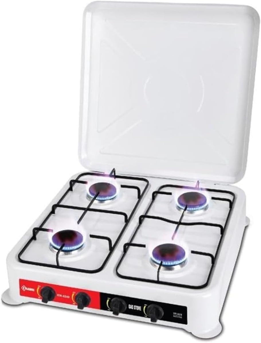 موقد غاز 4 عيون سهل التنظيف والاستخدام يمكنك التحكم في درجة قوة النار من الشعلة سطح الموقد أستيل غير قابل للصداء تصميم خفيف الوزن يُسهِل نقله إلى أي مكان