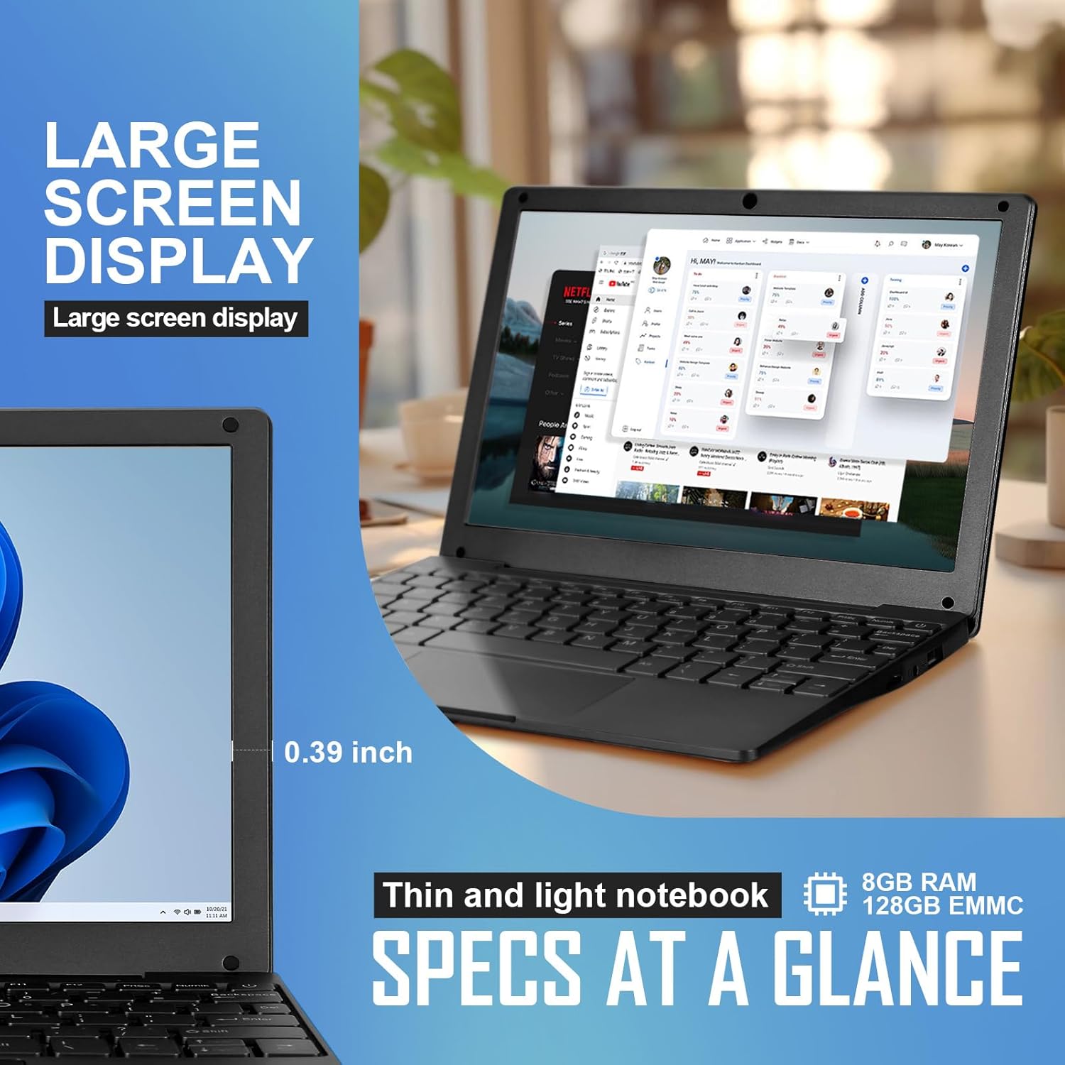【عمر بطارية طويل وسهل الحمل】يأتي لابتوب جي-انيكا مع عمر بطارية طويل مدمج، مما يضمن عمر بطارية طويل. تتميز أجهزة اللاب توب بأنها خفيفة الوزن، مما يجعل من السهل حمل لابتوب ويندوز 11 في حقيبة ظهرك. لابتوب طويل الأمد وخفيف الوزن لمرافقتك في رحلتك.