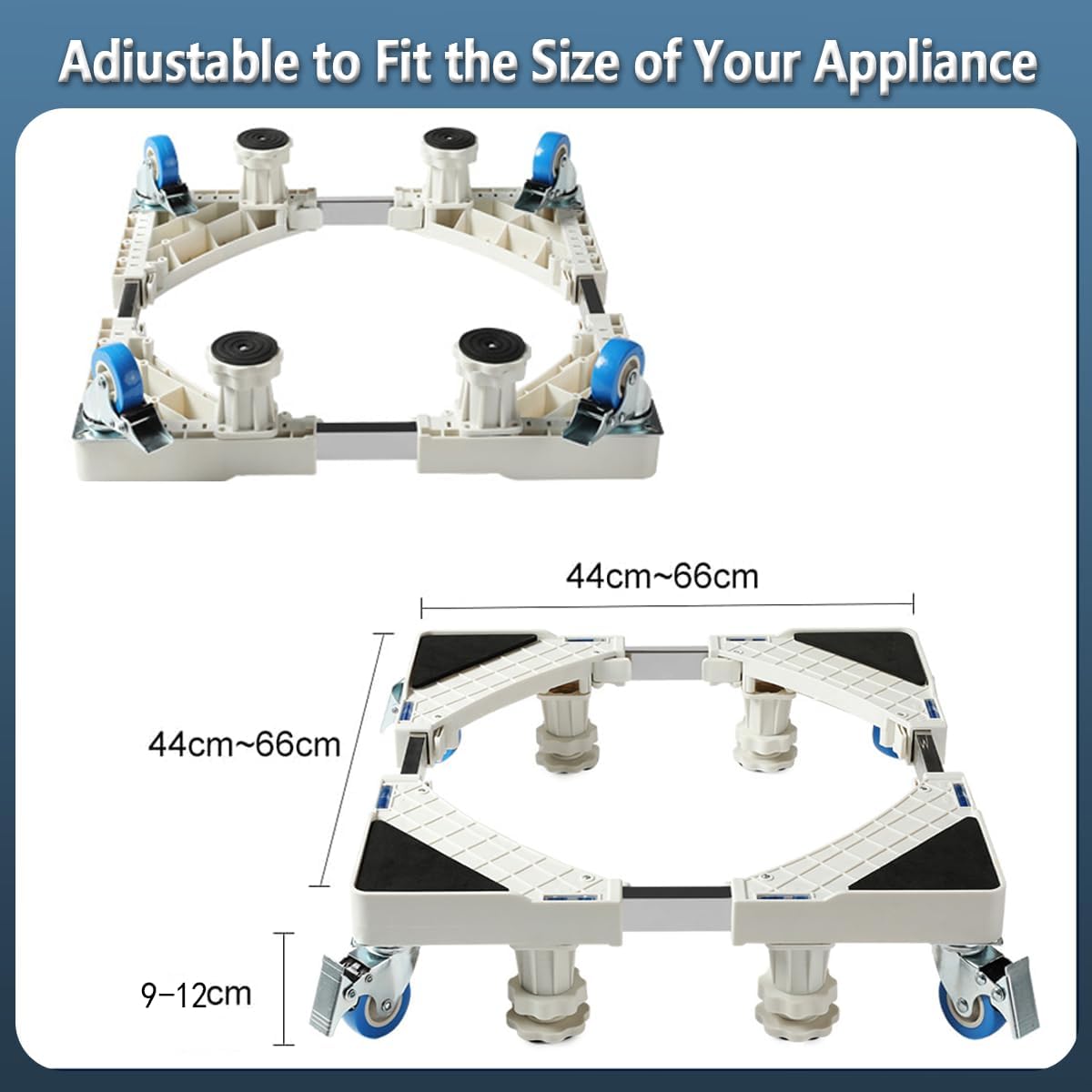【قاعدة غسالة قابلة للتعديل】 تم تصميم حامل الثلاجة القابل للتعديل الخاص بنا ليكون مرنًا وقابل للتعديل في الارتفاع من 9-12 سم وعرضه وطوله من 44 إلى 66 سم، مثالي لمجموعة واسعة من أحجام الأجهزة، مثل الغسالات والثلاجات والخزائن، مع منع الجهاز بشكل فعال من ملامسة الماء والغبار. ترفع قاعدة الجهاز الجهاز إلى ارتفاع مريح، مما يحسن الراحة بشكل كبير.