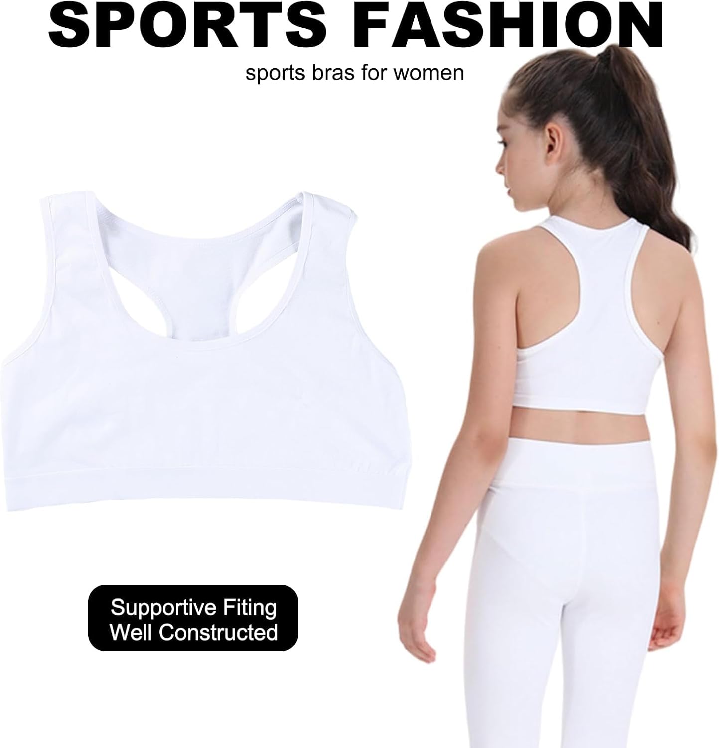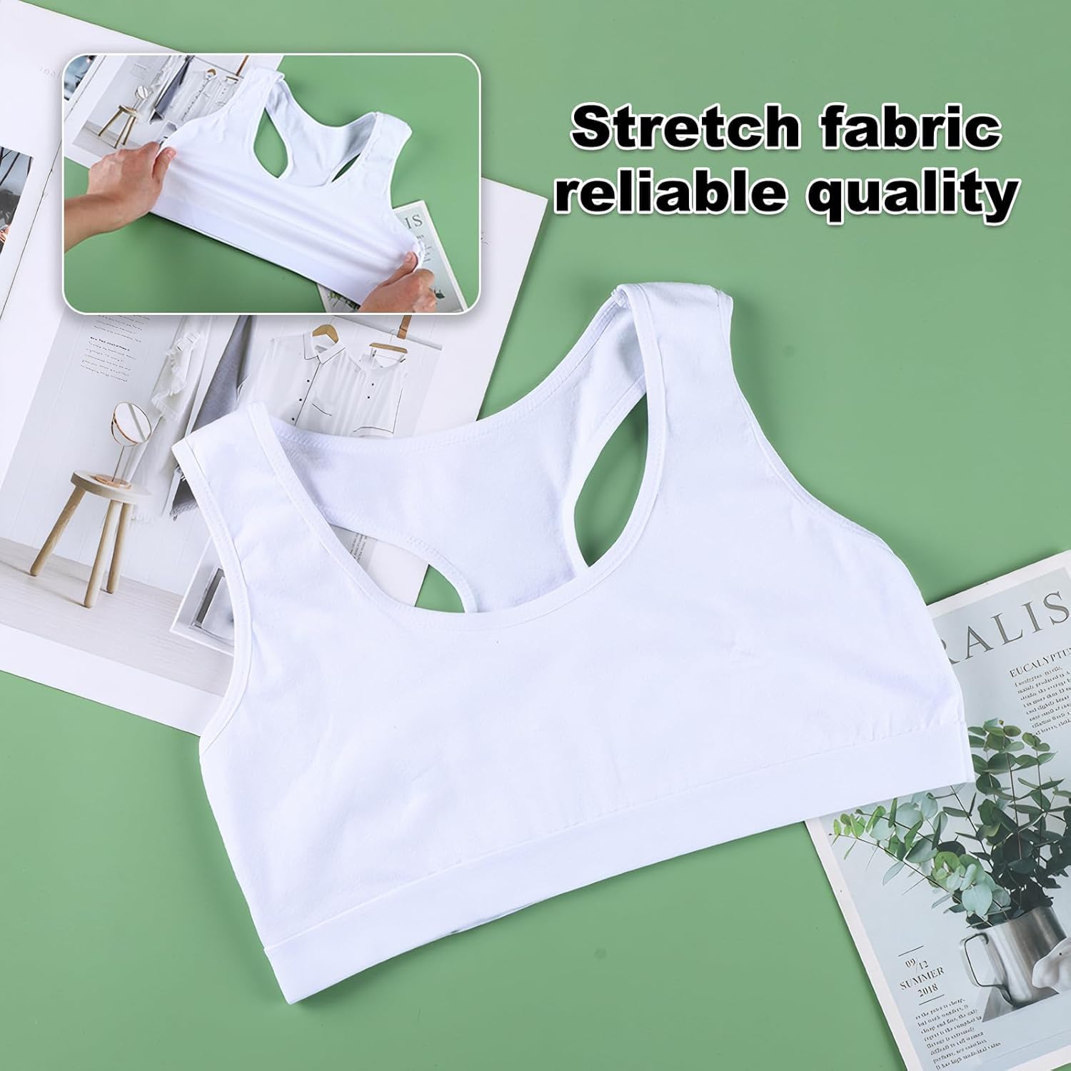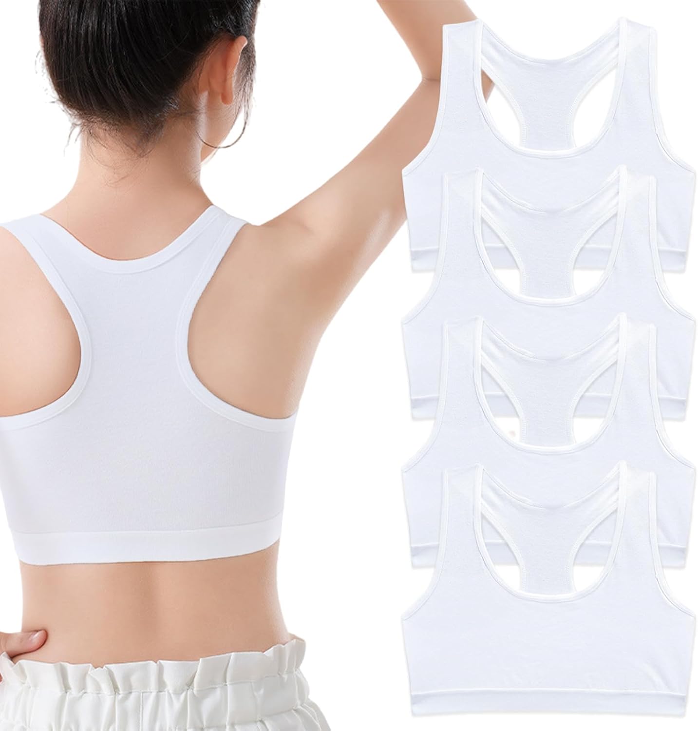 4 * حمالات صدر رياضية بيضاء للبنات (غير مبطنة، بدون سلك داخلي)
