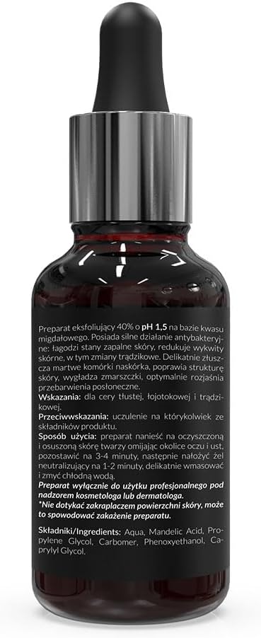تركيبة تقشير 40% مع 1.5 درجة حموضة تعتمد على حمض الماندليك مع تأثيرات قوية مضادة للبكتيريا تقلل من التهاب الجلد، وتقلل من الانفجارات بما في ذلك آفات حب الشباب.