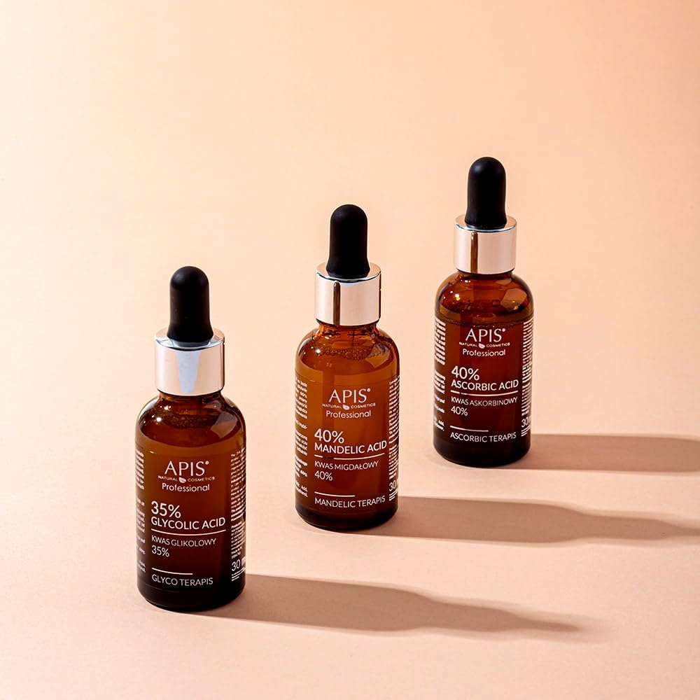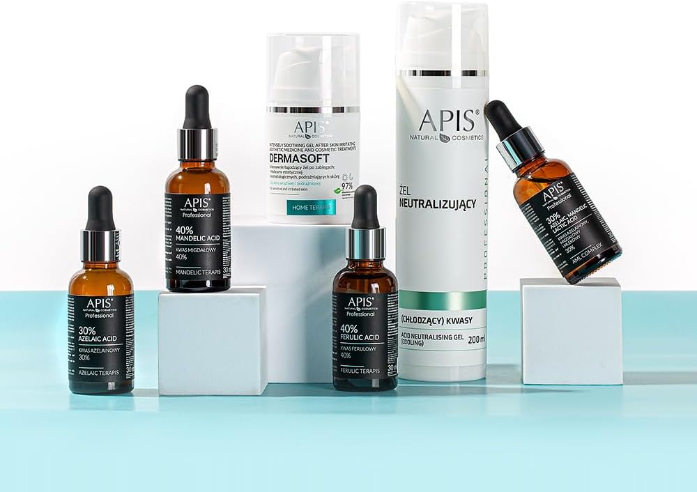 مخصص لـ: جميع أنواع البشرة، تركيبة تقشير 40% مع 1.5 درجة حموضة تعتمد على حمض الماندليك مع تأثيرات قوية مضادة للبكتيريا تقلل من التهاب الجلد، وتقلل من الانفجارات بما في ذلك آفات حب الشباب. يزيل خلايا الجلد الميتة بنعومة، ويحسن بنية البشرة، وينعم التجاعيد ويوحد تماما تغير لون تسمير الشمس. المكونات النشطة: حمض الماندليك – يساعد على تحفيز الكولاجين في البشرة، مما يجعل البشرة أكثر تماسكًا ومرونة. له تأثير منعش قوي. يعمل حمض اللوز على تحسين لون البشرة بشكل كبير عن طريق تفتيح البشرة وينظم الزهم ويساعد في مكافحة حب الشباب. الاستخدام: ضعي المستحضر على بشرة نظيفة وجافة للوجه، مع تجنب منطقة العين والفم. اتركيه لمدة 3-4 دقائق، ثم ضعي الجل المعادل لمدة 1-2 دقيقة، ودلكي بلطف واشطفه بالماء البارد. لا تلمس البشرة بالقطارة. يجب تكييف وتيرة الاستخدام بشكل فردي مع البشرة (كل 7 أو 14 أو 21 يومًا في سلسلة، 1-2 مرات في السنة). خلال النهار، من الضروري استخدام كريم بعامل حماية من الشمس 50 وتجنب أشعة الشمس! السعة: 30 مل