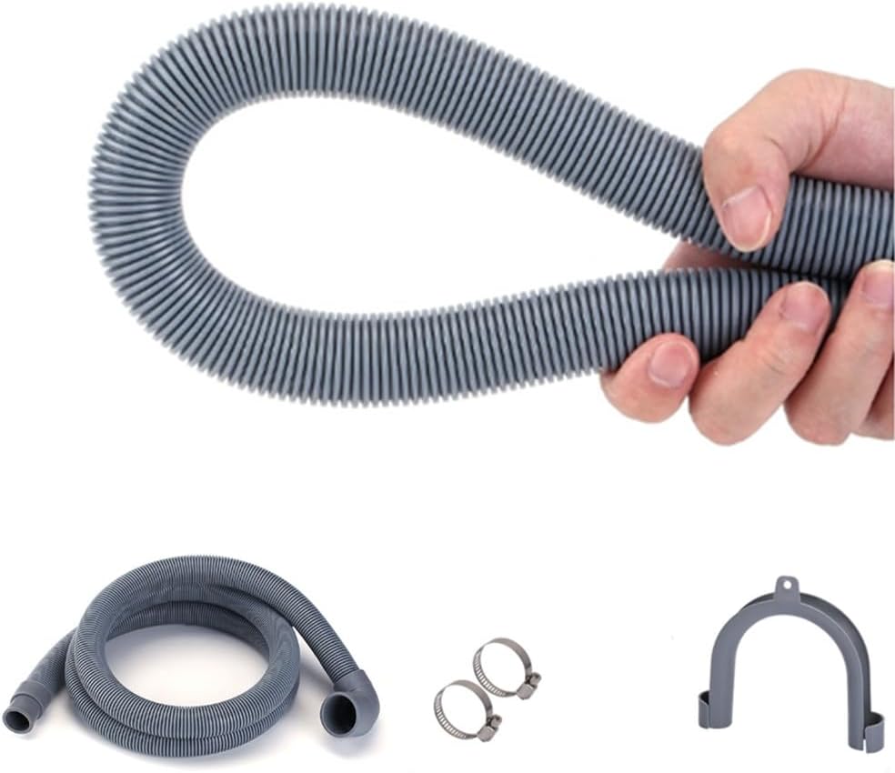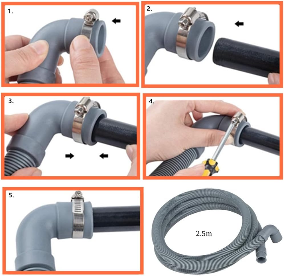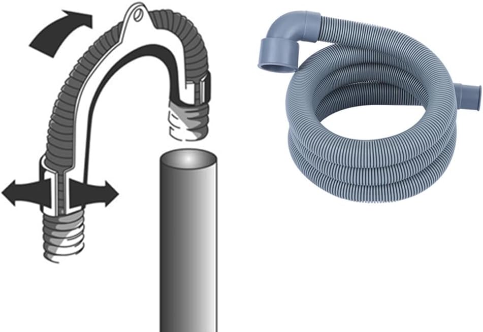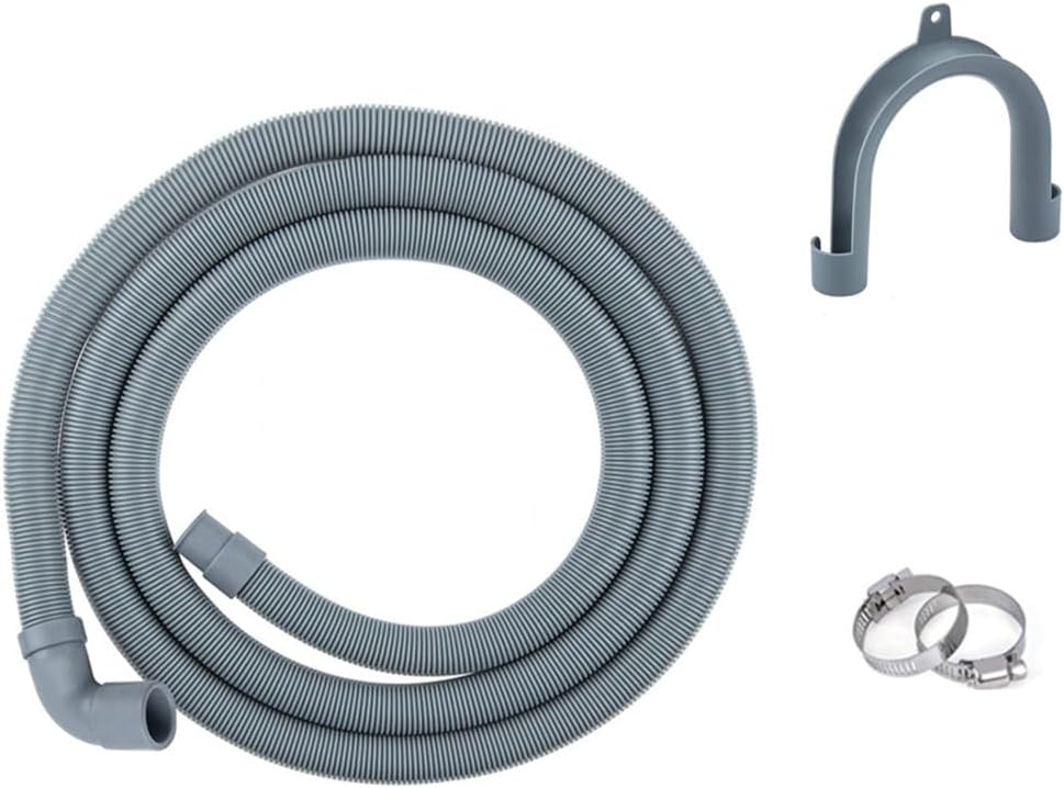 تمديد خراطيم تصريف الغسالة، خرطوم تصريف الغسالة المموج، تركيب بديل خرطوم تصريف الغسالة، خرطوم تصريف، 2 مشبك خرطوم، 1 حامل خرطوم منحني على شكل حرف U