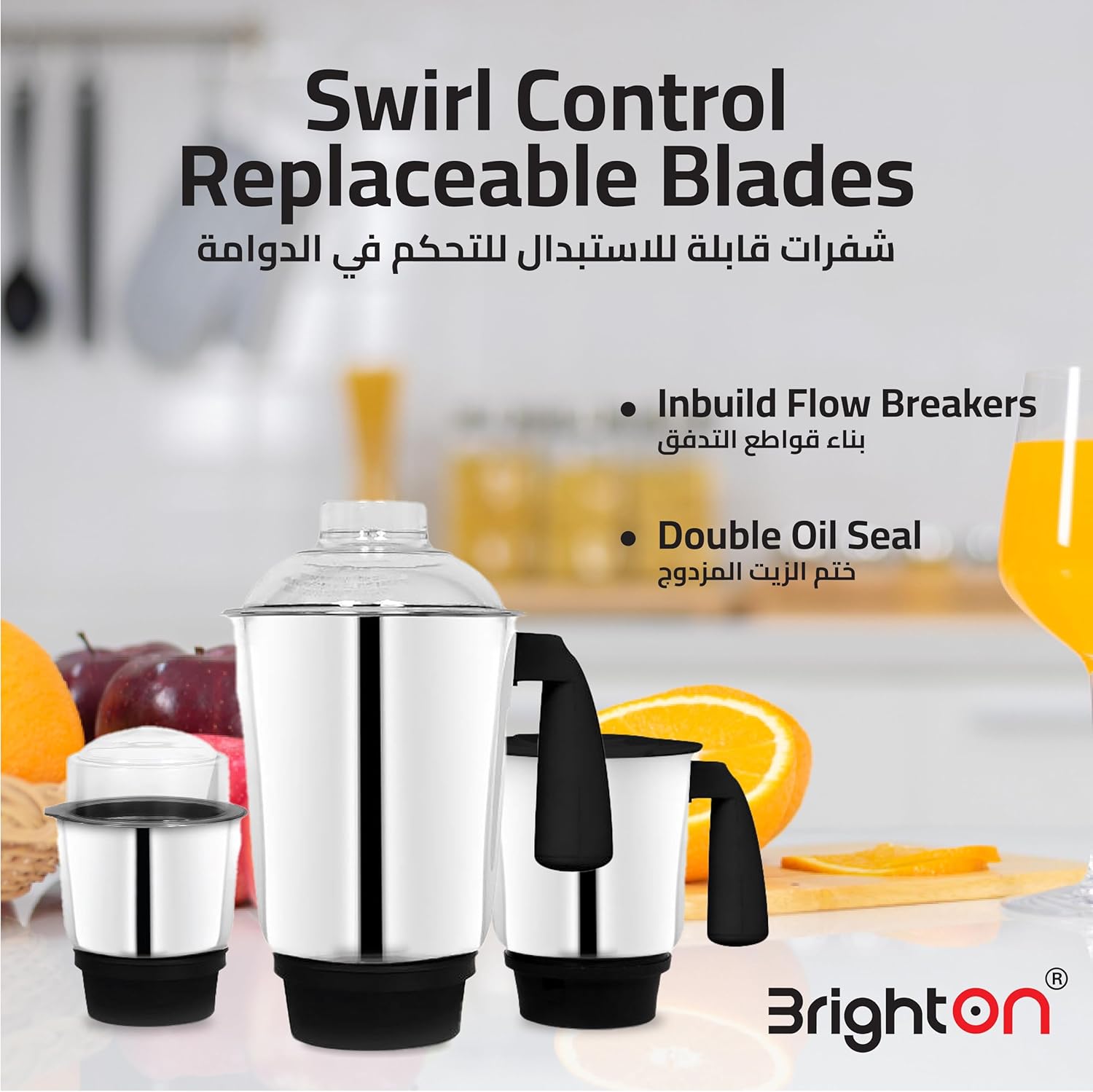 اكتشف قوة ودقة مطحنة الخلاط برايتون 3 في 1 المصممة لتناسب كل مطبخ عصري. يعمل هذا الجهاز متعدد الاستخدامات بمحرك قوي بقوة 800W، ويتعامل بسهولة مع كل شيء بدءًا من التوابل القوية إلى الخلطات السلسة. تتضمن ثلاث برطمانات من الفولاذ المقاوم للصدأ – مصفاة سعة 1.2 ل مع غطاء قبة من البولي كربونات، وبرطمان طحن جاف 0.8 ل، وبرطمان صلصة 0.4 ل، جميعها مجهزة بأغطية من البولي كربونات غير قابلة للكسر من أجل المتانة والسلامة. يتميز بتقنية الطحن التوافقي المتقدمة وقواطع تدفق مدمجة، مما يضمن نتائج متسقة ودقيقة في كل مرة. تعمل الملاءمة المحسنة من البرطمان إلى الشفرة والشفرات المصنوعة بدقة على تعزيز الكفاءة مع تقليل التآكل على المحرك. مع تحكم دوار بـ 3 سرعات ومينا سهل الإمساك مع وظيفة قاطع، يمكنك التحكم الكامل في الملمس والمعالجة. السلامة أمر بالغ الأهمية مع حماية مدمجة من الحمل الزائد لحماية المحرك أثناء تقلبات الجهد أو الأحمال الثقيلة. صُنعت مطحنة الخلاط برايتون بفخر في الهند، مما توفر راحة البال والأداء الموثوق. ارتقِ بتجربة مطبخك – أحضر خلاط ومطحنة برايتون 3 في 1 إلى منزلك اليوم واطحن بذكاء، لا بجهد!