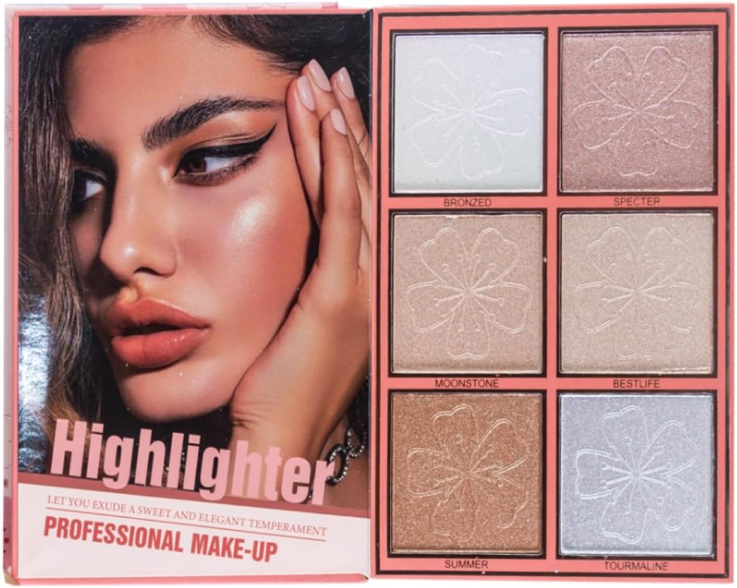 6 الوان من هايلايتر مختارة بعناية تتميز بتركيبة حريرية ناعمة سهلة الدمج ليمنح البشرة اللمعان و الاشراقة الطبيعية.
