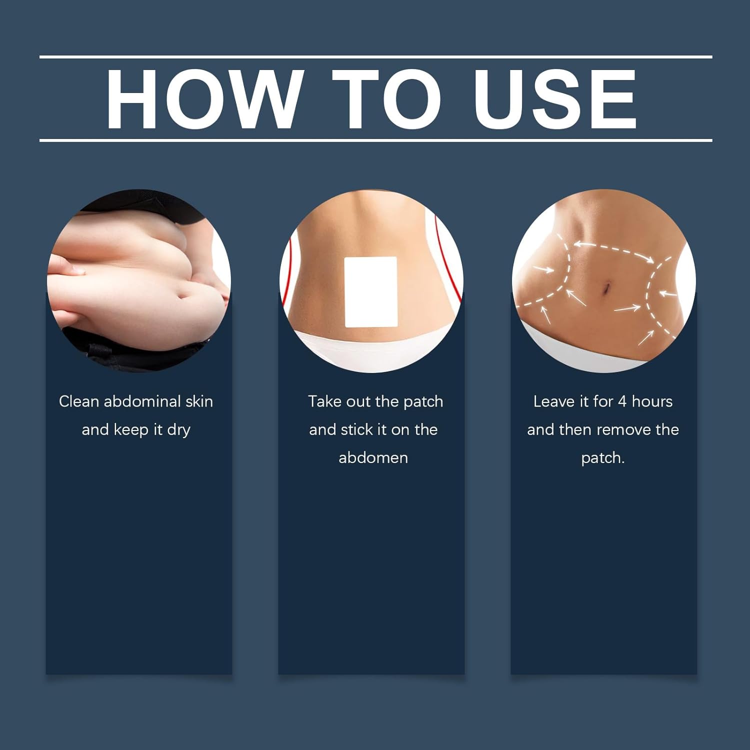 للاستخدام، أخرج الرقعة وألصقها على البطن. اتركه لمدة 4 ساعات ثم أزل الرقعة