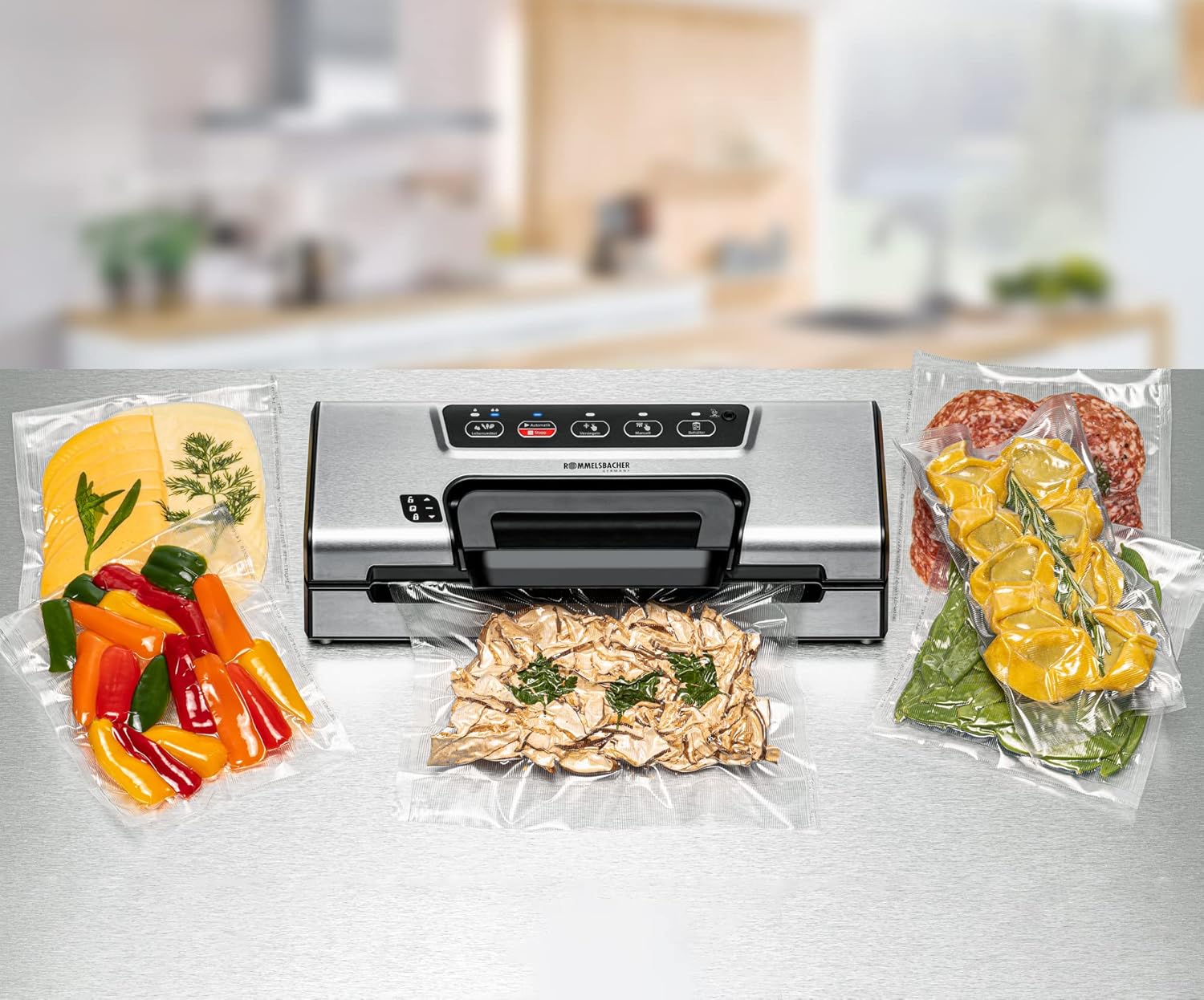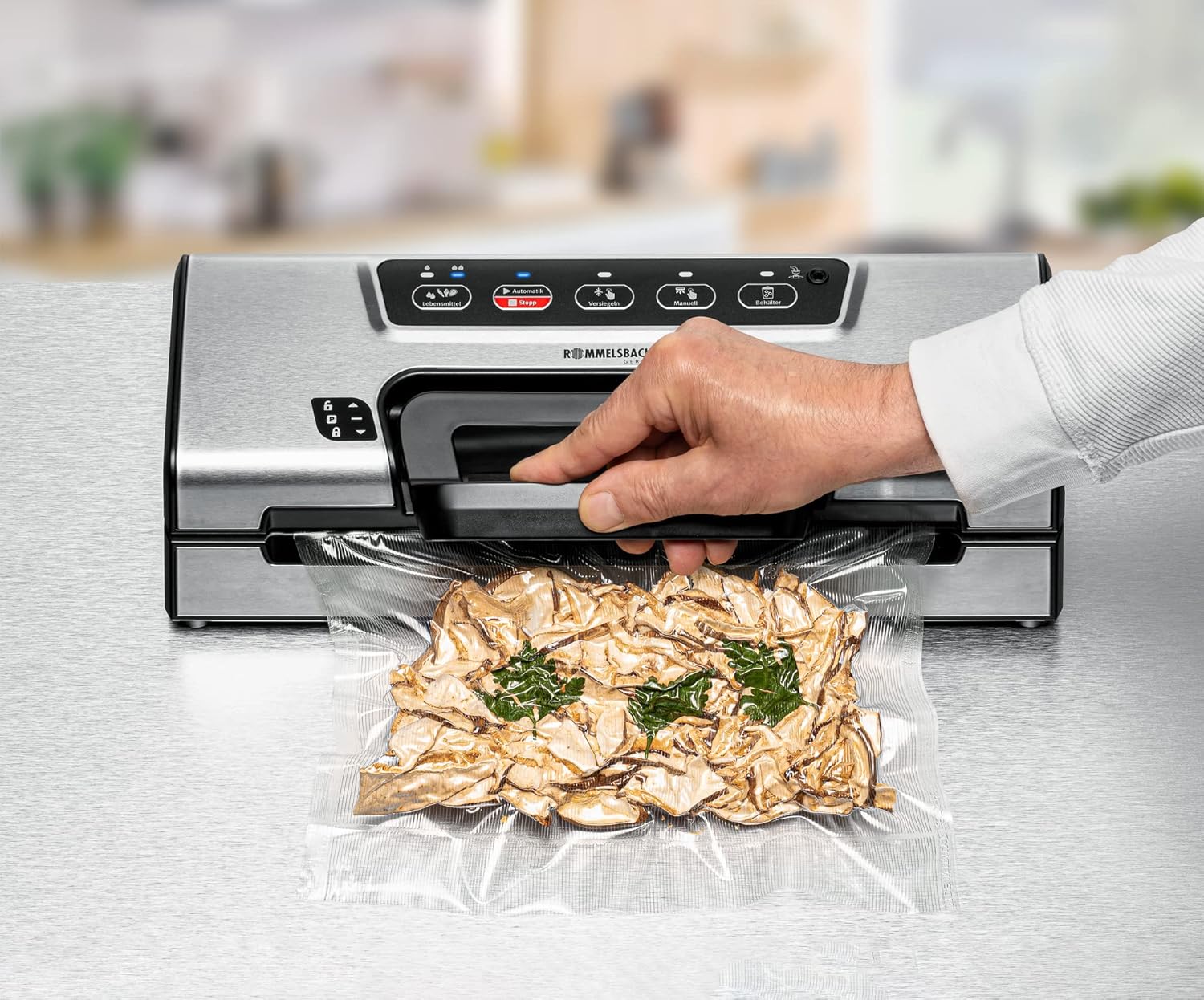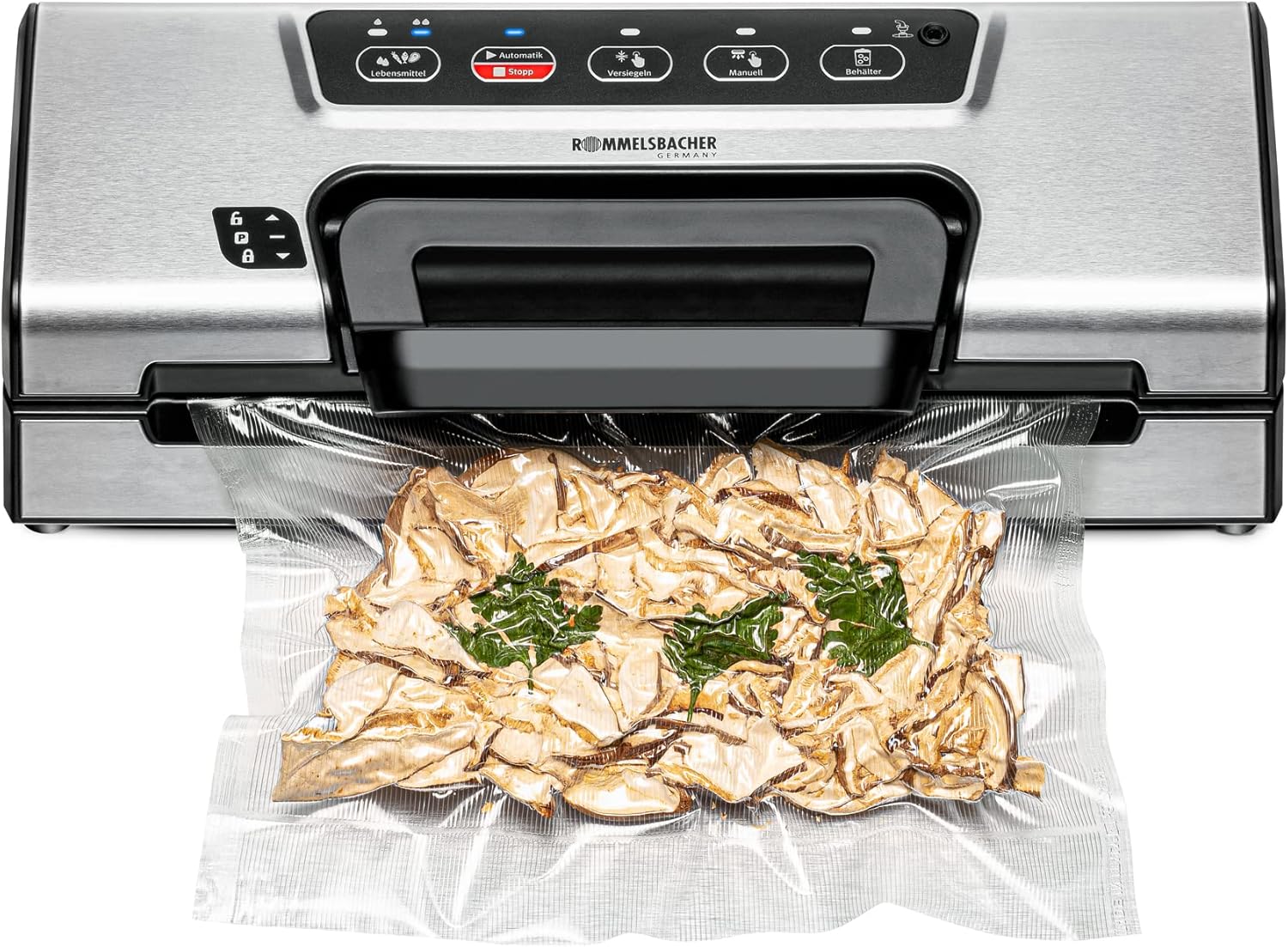 هذا السدادة القوية تثير الإعجاب في كل منزل. مع المقبض المريح، يمكن فتح الجهاز المدمج وإغلاقه بسهولة بيد واحدة دون مجهود. جيب اللف المدمج مع جهاز القطع يحافظ على لفة الغشاء المطلوبة جاهزة دائمًا للاستخدام. تضمن المضخة القوية ضغطًا سلبيًا يصل إلى -0.8 بار في أكياس التفريغ، ثم يتم إغلاقها تلقائيًا بالكامل بدرزة ثابتة في عملية واحدة فقط. مع الوظيفة الخاصة للطعام الحساس والرطب، يمكن تنظيفها بالمكنسة الكهربائية تلقائيًا وأمان، ولكن يمكن أيضًا تنظيفها بالمكنسة الكهربائية والغلق يدويًا. وبالتالي يمكن تكييف عملية الإغلاق بتفريغ الهواء بشكل فردي مع جميع الأطعمة. يمكن أيضًا التنظيف بالمكنسة الكهربائية في حاويات خاصة، حتى تتمكن من تعبئة الطعام السائل والحساس للغاية بلطف والحفاظ عليه طازجًا لفترة طويلة جدًا. حتى الطعام المجمد يمكن حمايته من حرق الفريزر. أداة الإغلاق القوية هذه مناسبة للاستخدام طويل الأمد، لذلك فهي مثالية للصيادين والصيادين وللاستخدام شبه الاحترافي في المطاعم الصغيرة. تعمل المكنسة الكهربائية على إطالة العمر الافتراضي للطعام عدة مرات – ولهذا السبب لا ينبغي أن يكون جهاز VAC 385 مفقودًا في أي منزل!