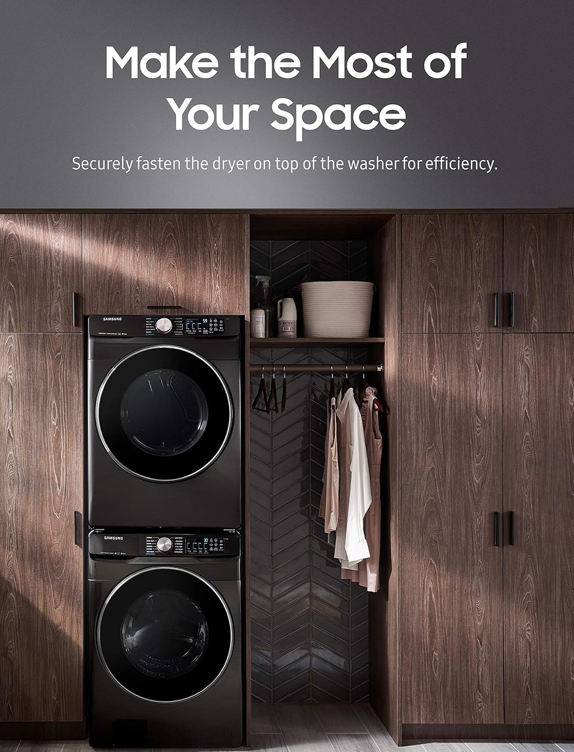 مجموعة تكديس الغسيل: متوافقة مع معظم غسالات ومجففات التحميل الأمامي بعرض 27 بوصة من سامسونج وتوفر المساحة في منزلك؛ لاستخدام المساحة المحدودة بكفاءة، استخدم مجموعة التكديس لربط وتنظيم وحداتك مع المجفف أعلى الغسالة