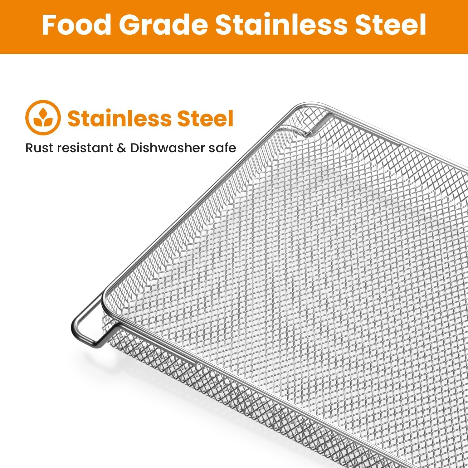 ملحقات مقلاة نينجا الهوائية مصنوعة من ستيل عالي الجودة آمن غذائيًا وخالية من البيسفينول ايه ومتوافقة مع إدارة الغذاء والدواء الأمريكية؛ سلة المقلاة الهوائية المصنوعة من الستانلس ستيل متينة ومقاومة للحرارة، وآمنة للاستخدام في درجات حرارة تصل إلى 450 درجة فهرنهايت. يمكنك استخدامه لفترة طويلة قبل أن تحتاج إلى استبداله.