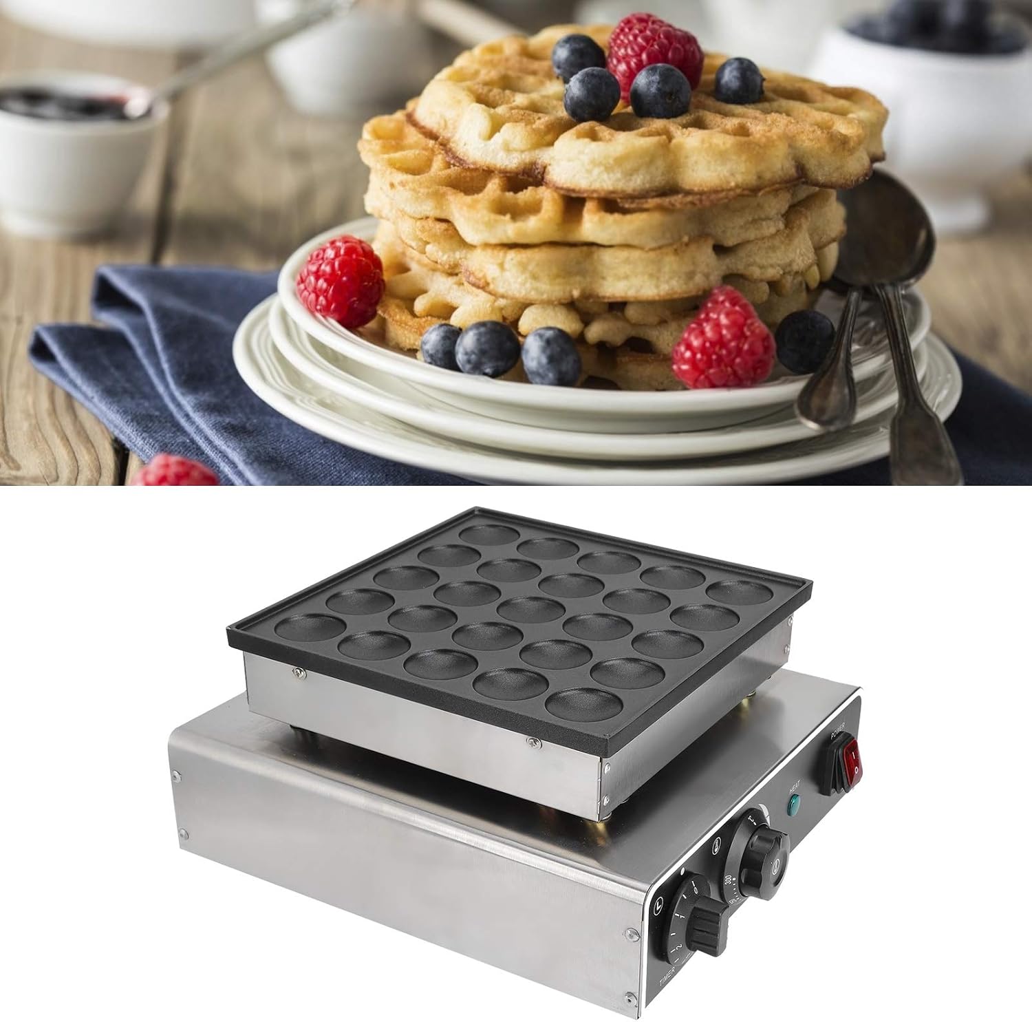 【 و】مصنوعة من الستانلس ستيل الآمن غذائيًا، ماكينة صنع الوافل هذه قوية ومقاومة ويمكنها تحمل درجات الحرارة العالية.