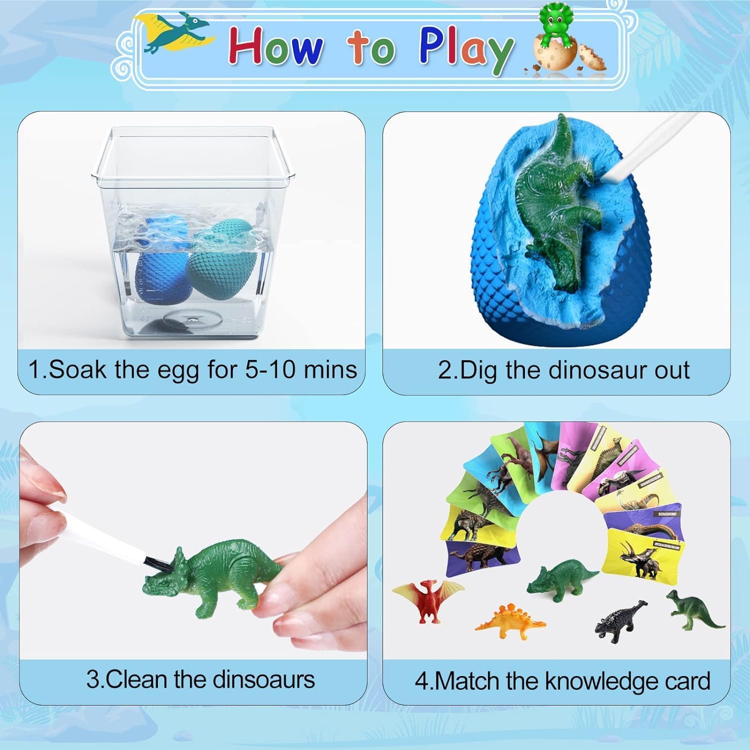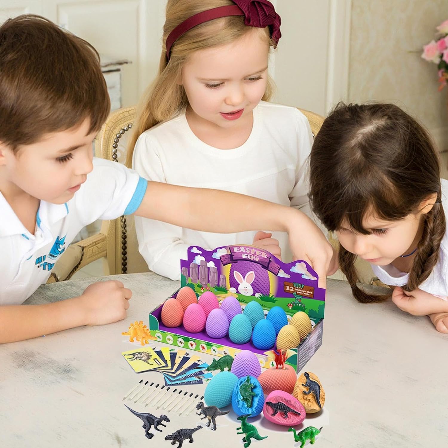 مجموعة حفر بيض الديناصورات المكونة من 12 قطعة: مع 12 بيضة ديناصور متضمنة في المجموعة، هناك الكثير من متعة التنقيب للتجول. سواء تم مشاركتها مع الأصدقاء خلال موعد اللعب أو الاستمتاع بها بمفردها، فإن كل بيضة تقدم اكتشافًا مثيرًا في انتظار الكشف عنها.