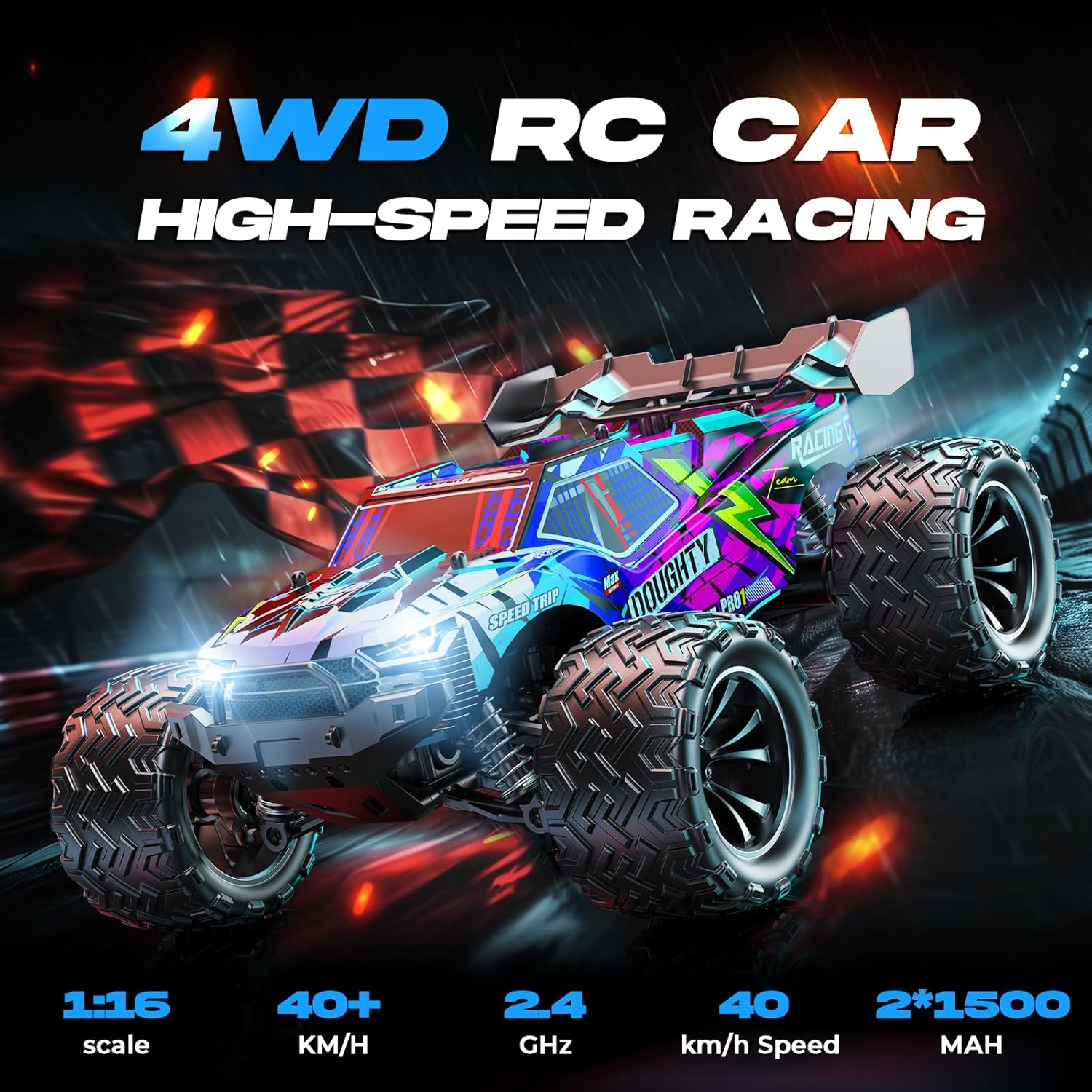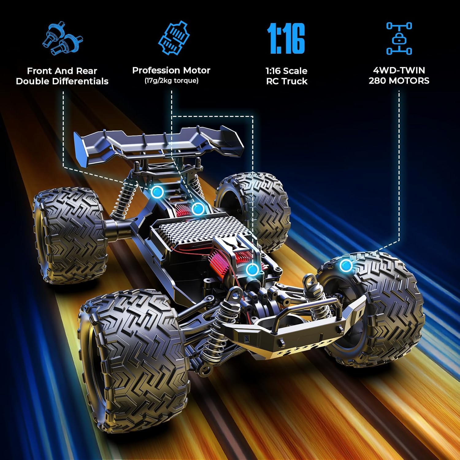 【سرعة قصوى تبلغ 40 كم/ساعة وقوة دفع رباعي】 جرب سباقًا مثيرًا عالي السرعة مع هذه السيارة التي تعمل بجهاز تحكم عن بعد بمقياس 1:16 التي تصل إلى سرعات تصل إلى 40 كم/ساعة، وتتميز بنظام دفع رباعي قوي للحصول على أقصى قدر من الجر والتحكم في أي تضاريس.