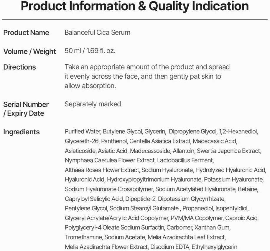 تركيبة لطيفة: تحتوي على تركيز عالٍ من كينتيلا اسياتيكا لتهدئة البشرة الحساسة والمتهيجة، مما يقلل الاحمرار وعدم الراحة..