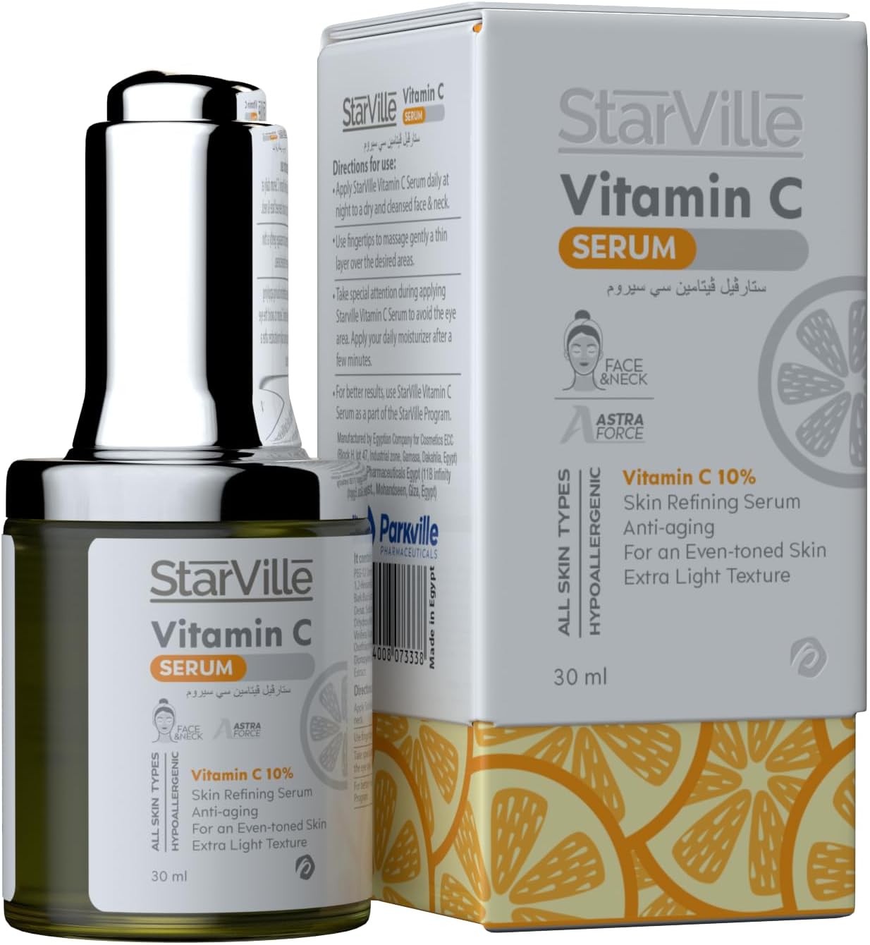 سيروم فيتامين سي من ستارفيل يعزز حيوية البشرة ونضارتها. مضاد للتجاعيد يساعد على محو الخطوط الدقيقة. مضاد للأكسدة ويعمل على توحيد لون البشرة. يعزز اختفاء البقع الداكنة ويمنع ظهورها مرة أخرى. يثري بشرتك بالفيتامينات الأساسية اللازمة لبشرة صحية ومتوهجة