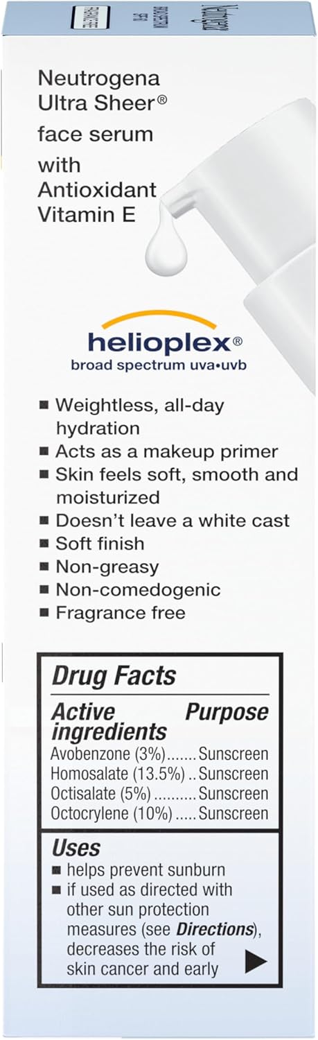 شراء سيروم مرطب للوجه الترا شير بفيتامين E وعامل حماية من الشمس 60+ من نيوتروجينا، يدوم طوال اليوم مع حماية واسعة الطيف من الاشعة فوق البنفسجية الطويلة والمتوسطة، خال من العطور والاوكسي بنزون، 1.7 اونصة اون لاين من امازون او نون وحراج سيروم مرطب للوجه الترا شير بفيتامين E وعامل حماية من الشمس 60+ من نيوتروجينا، يدوم طوال اليوم مع حماية واسعة الطيف من الاشعة فوق البنفسجية الطويلة والمتوسطة، خال من العطور والاوكسي بنزون، 1.7 اونصة