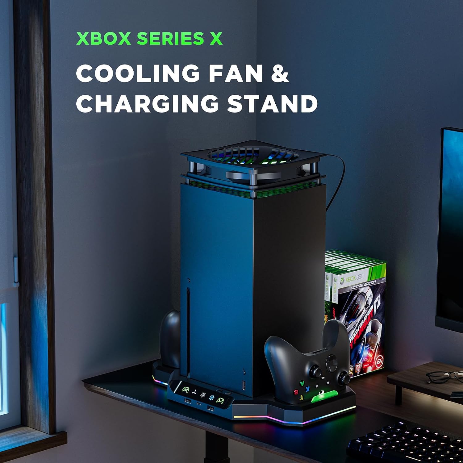 حافظ على جهاز Xbox Series X الخاص بك باردًا ومنظمًا مع نظام التبريد والشحن متعدد الوظائف هذا.