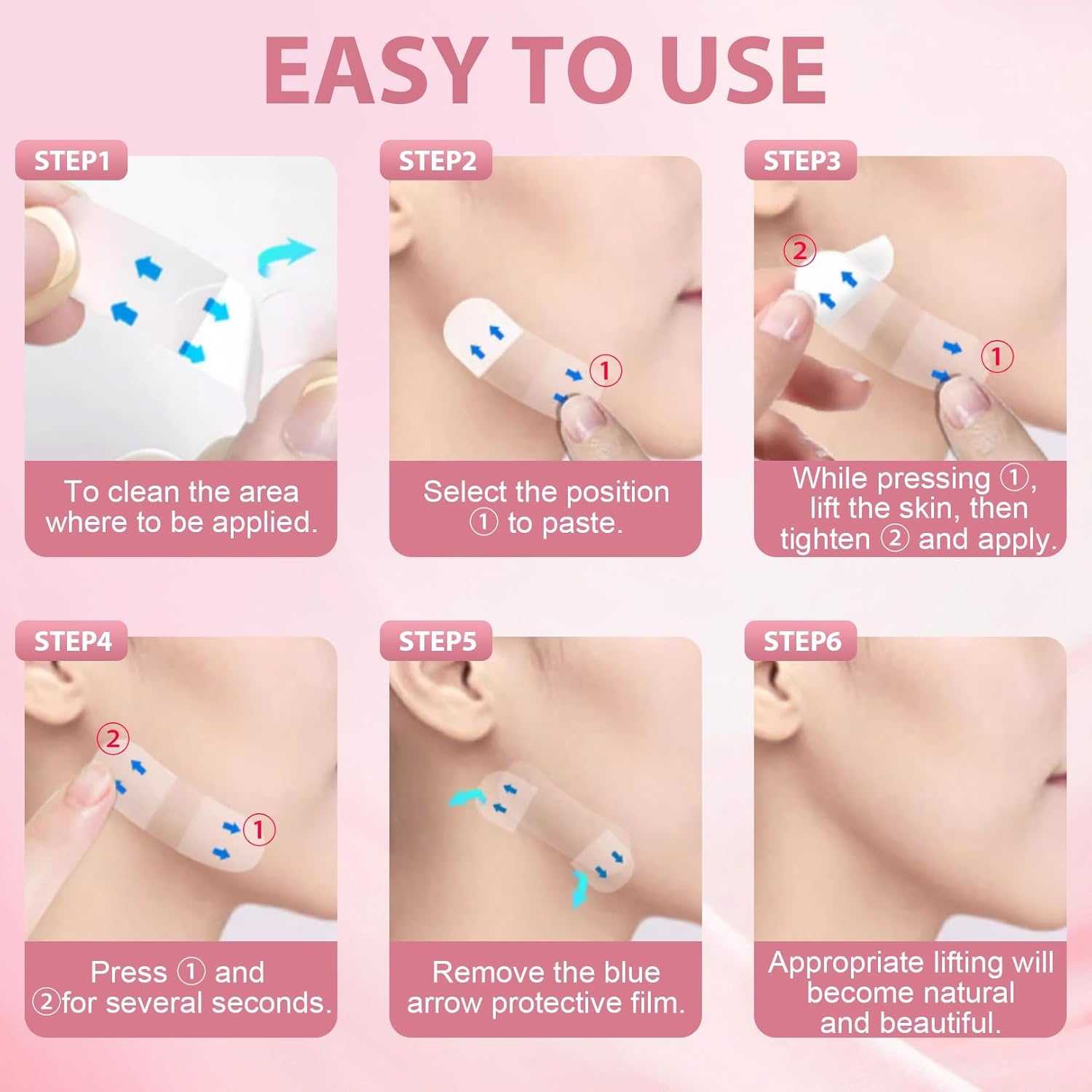 【مكياج يدوم طويلاً】: يتميز شريط شد الوجه غير المرئي هذا بتصميم غير لامع ورفيع للغاية يمكن أن يظل غير مرئي حتى عند وضع كريم الأساس الثقيل. سواء كان العرق أو الرطوبة أو التمرين، يمكن تثبيته بإحكام لأكثر من 8 ساعات. ارقص أو تضحك أو اقض كل يوم مليء بالطاقة – دون القلق بشأن الانزلاق