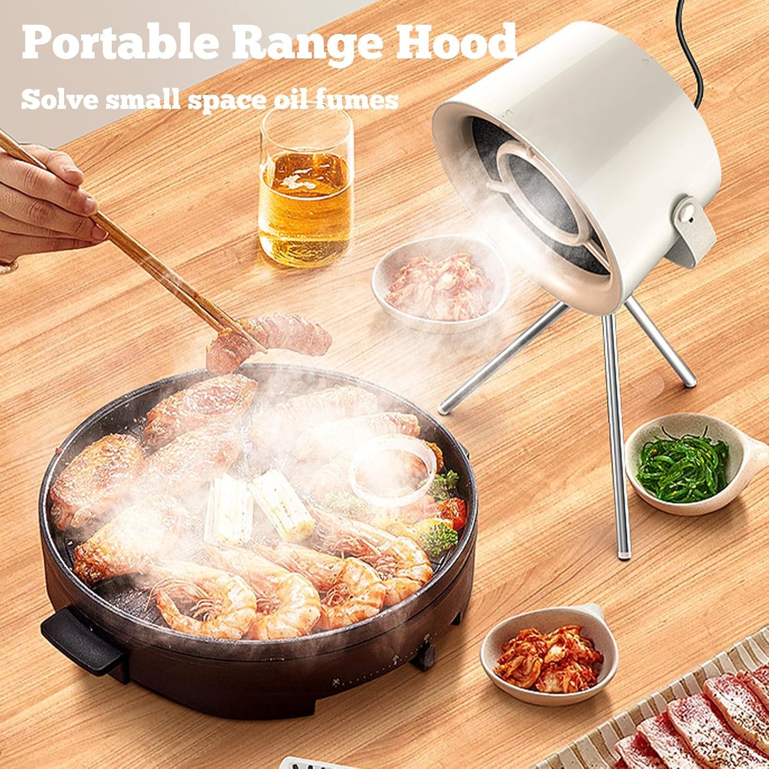 فتحة تهوية محمولة بدون الحاجة إلى تركيب، مفيدة للأيدي الخضراء، ويتم توفير فلتر إضافي لامتصاص الشحوم والدخان وبخار الماء، لتجنب انتشار أبخرة الزيت.