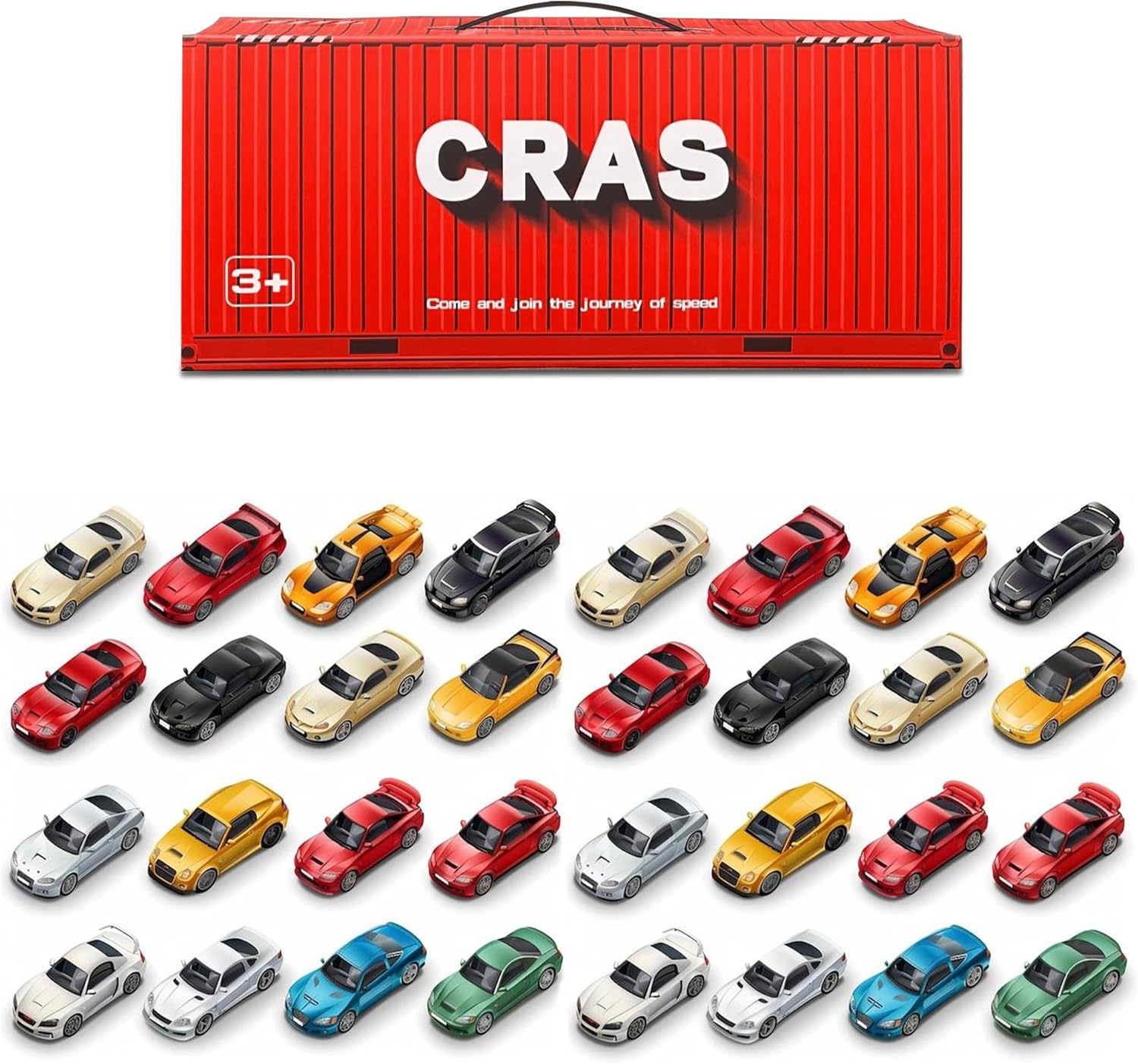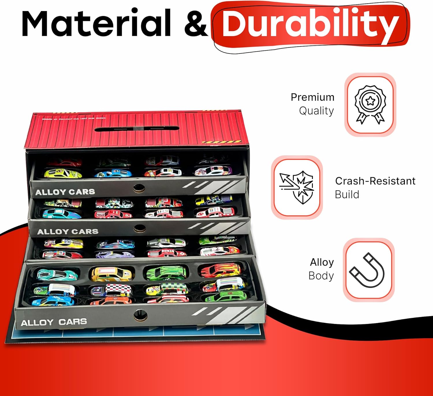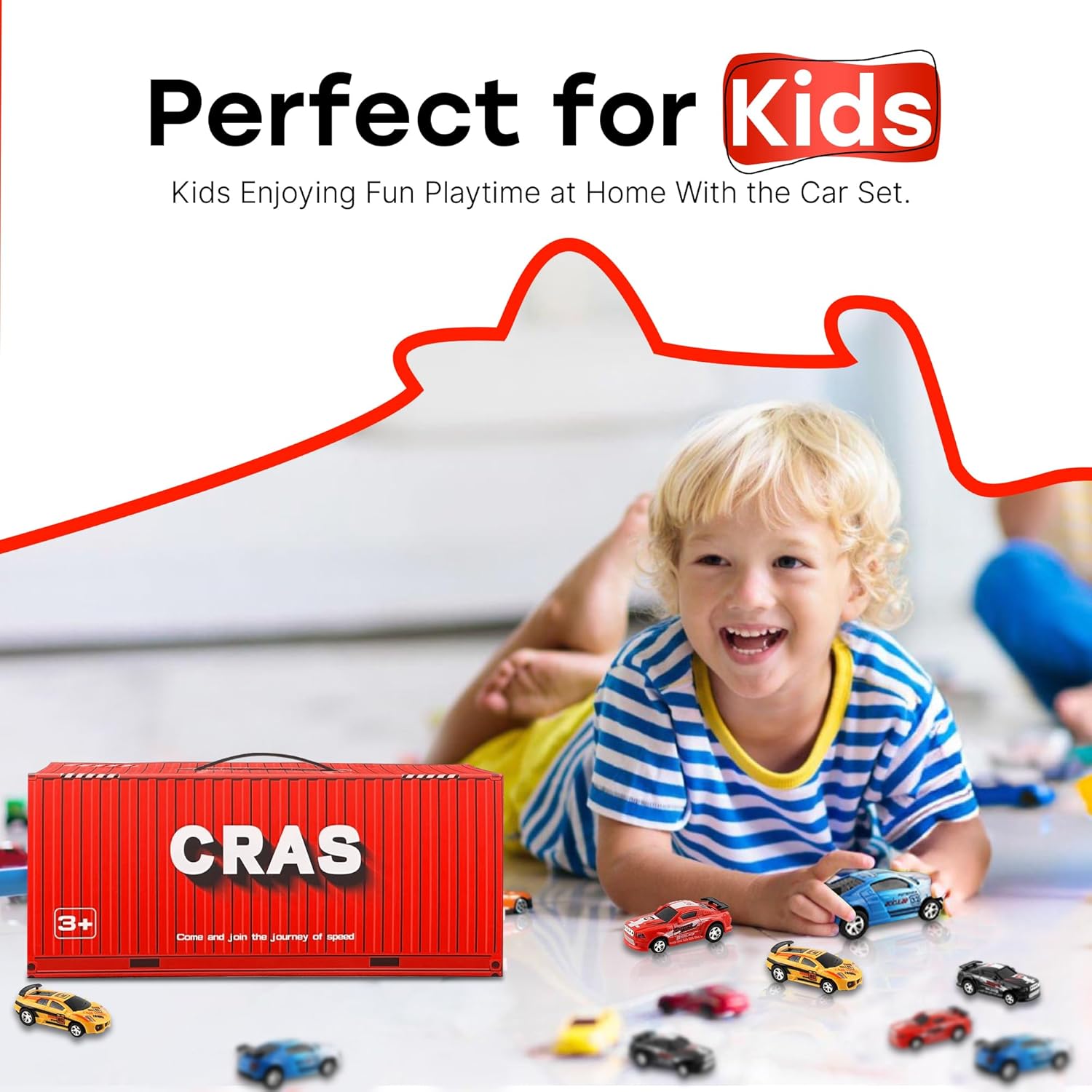 مجموعة كاملة: 48 مركبة مصبوبة متضمنة مع حقيبة حمل ومسار سباق بساط لعب لترفيه لا نهاية له