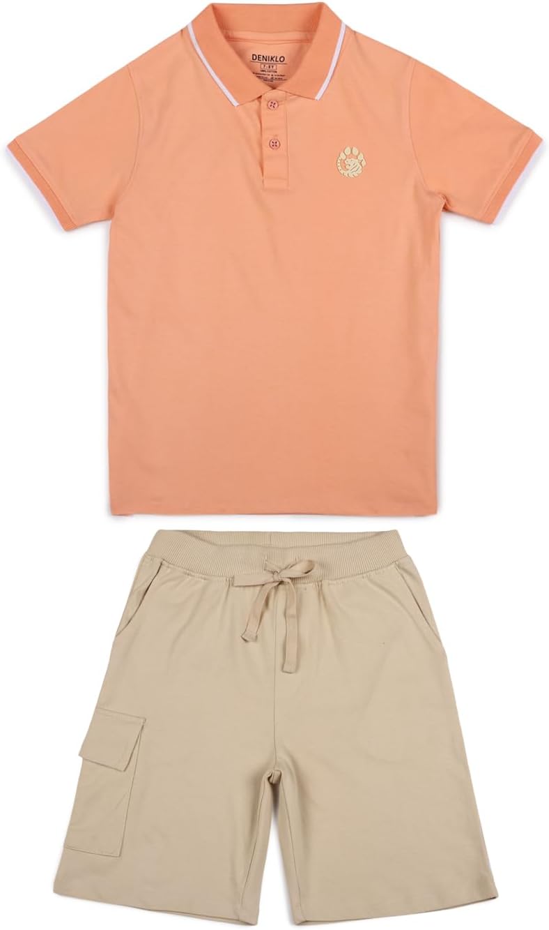 طقم تيشيرت بولو وشورت للأولاد مصنوع من القطن بنسبة 100% وقماش مغسول بيولوجيًا من دنيكلو