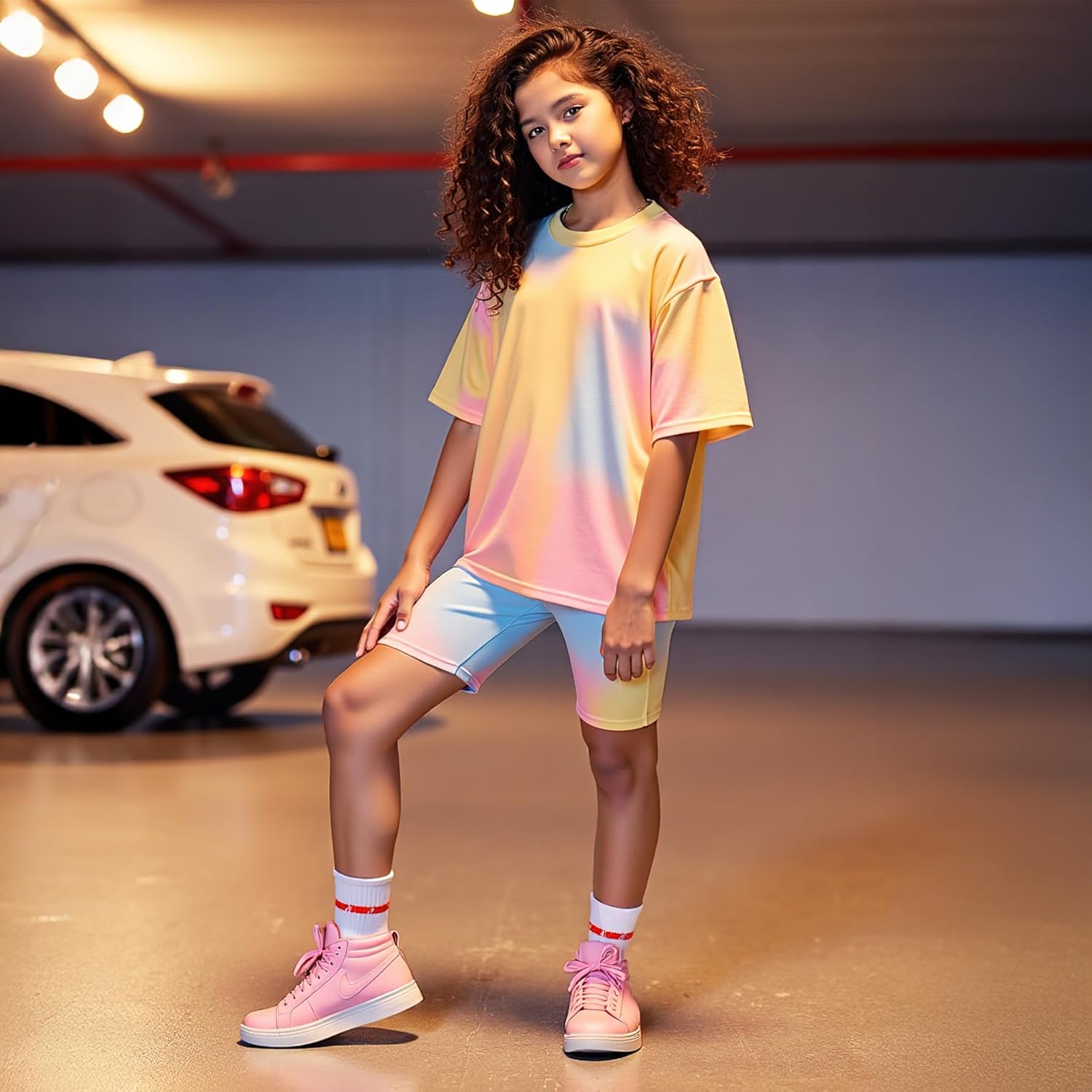 طقم تي شيرت وشورت متدرج للبنات من زولينوفا، ملابس صيفية متواضعة مع خصر مطاطي، 8-12 سنة، ملابس بنات مريحة