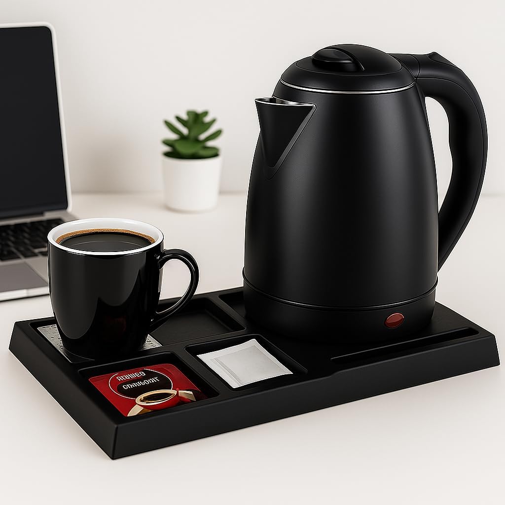 صينية منظمة ومقاومة للخدش: توفر ترتيبًا أنيقًا للكوبين والغلاية وملحقات الضيافة.
