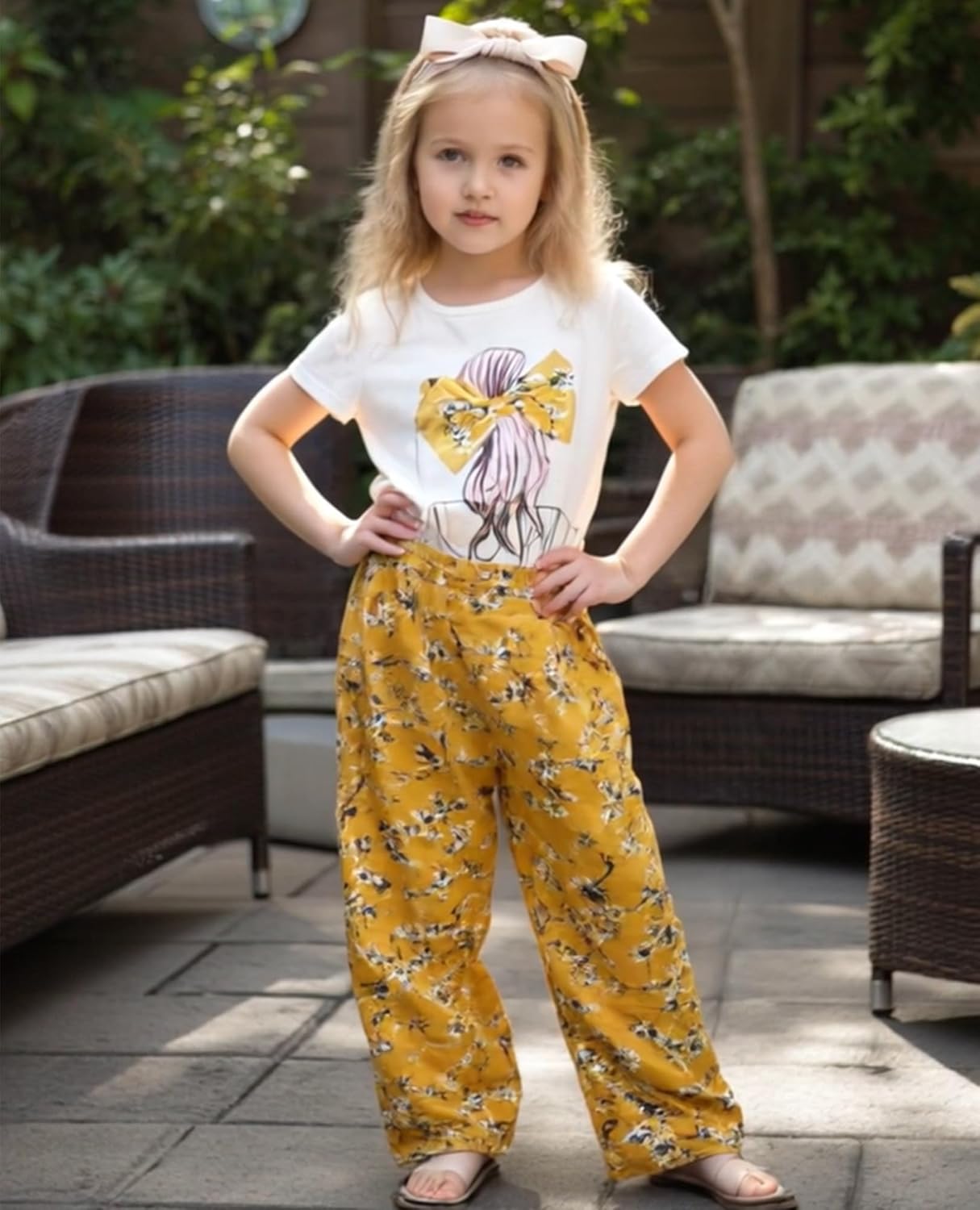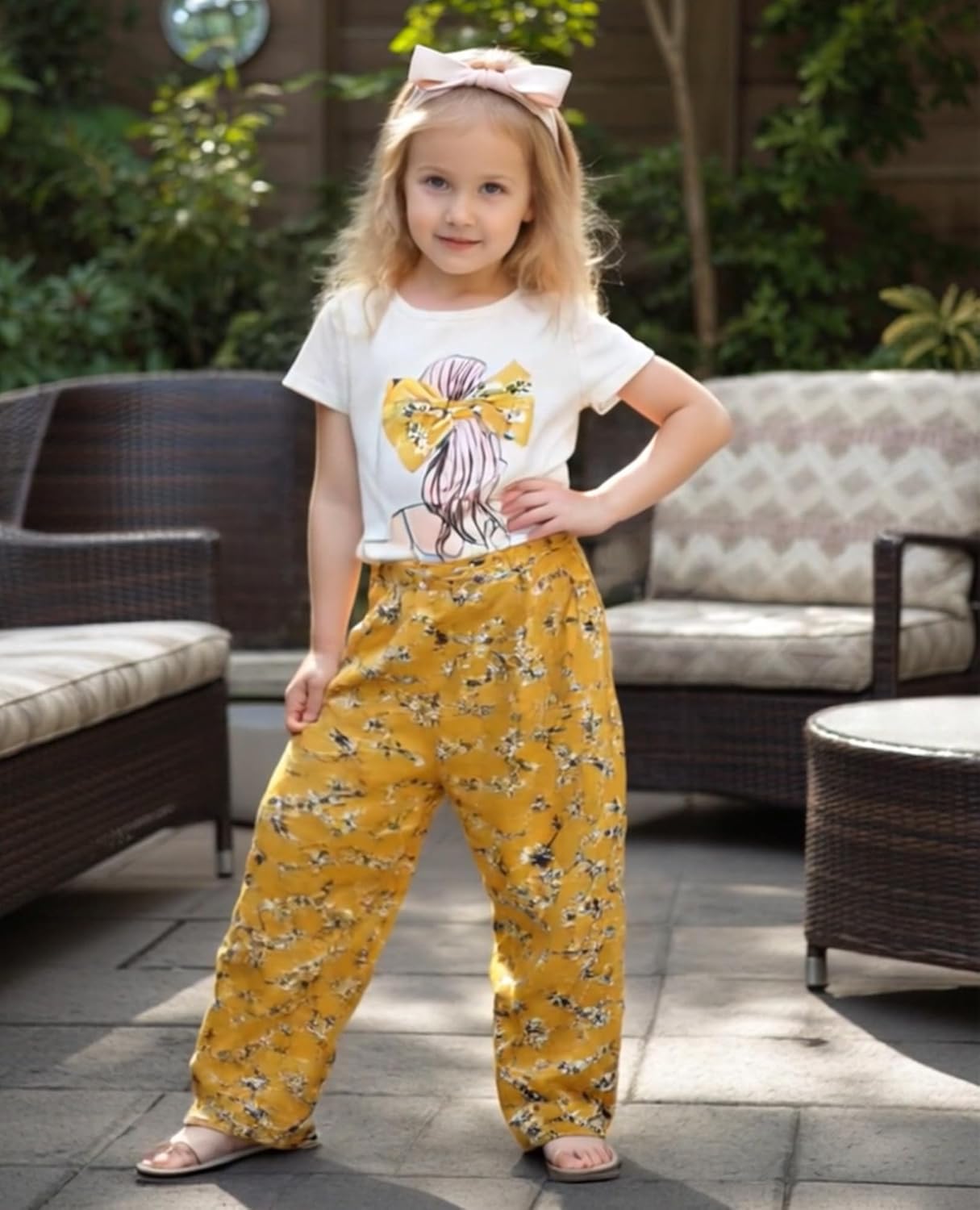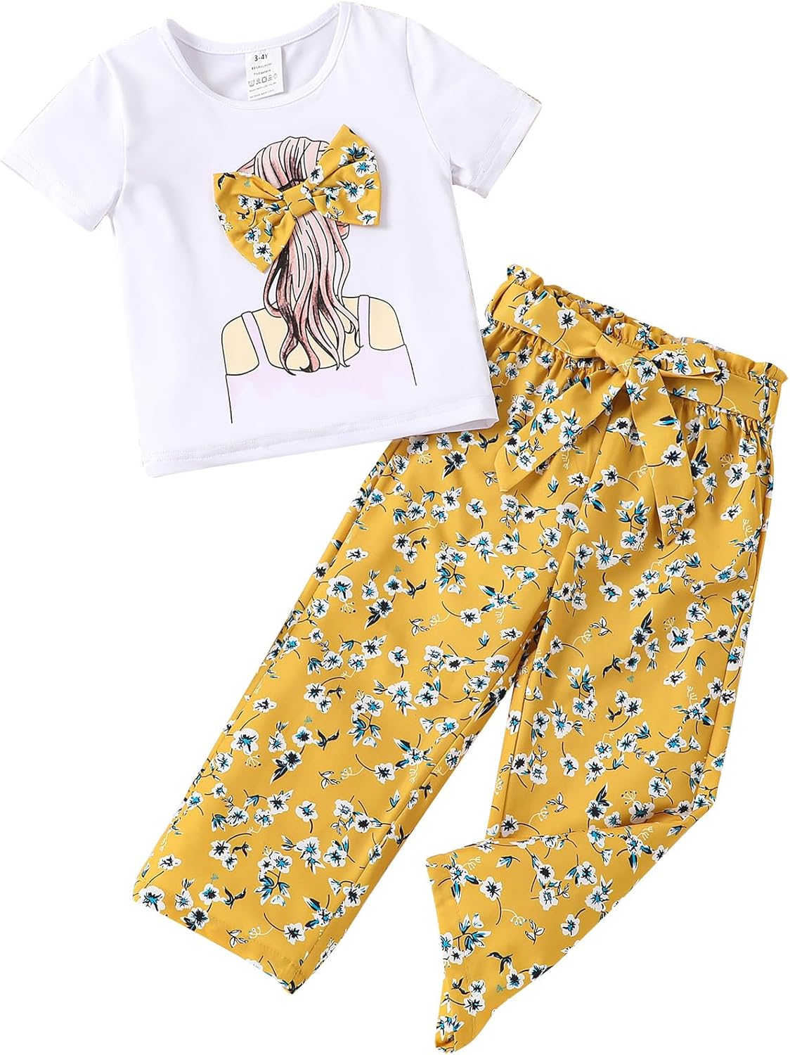 اسم المنتج: ملابس بناتية عصرية مطبوعة تي شيرت وبنطلون
