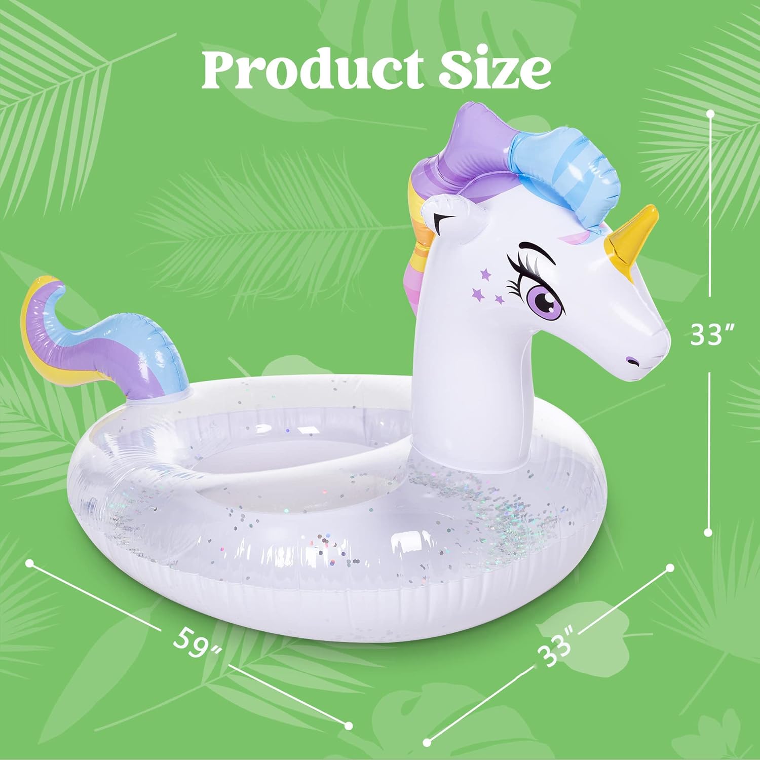 تصميم مغناطيسي: عوامة حمام سباحة بتصميم يونيكورن قابلة للنفخ مع جليتر مبهر لمظهر مميز.