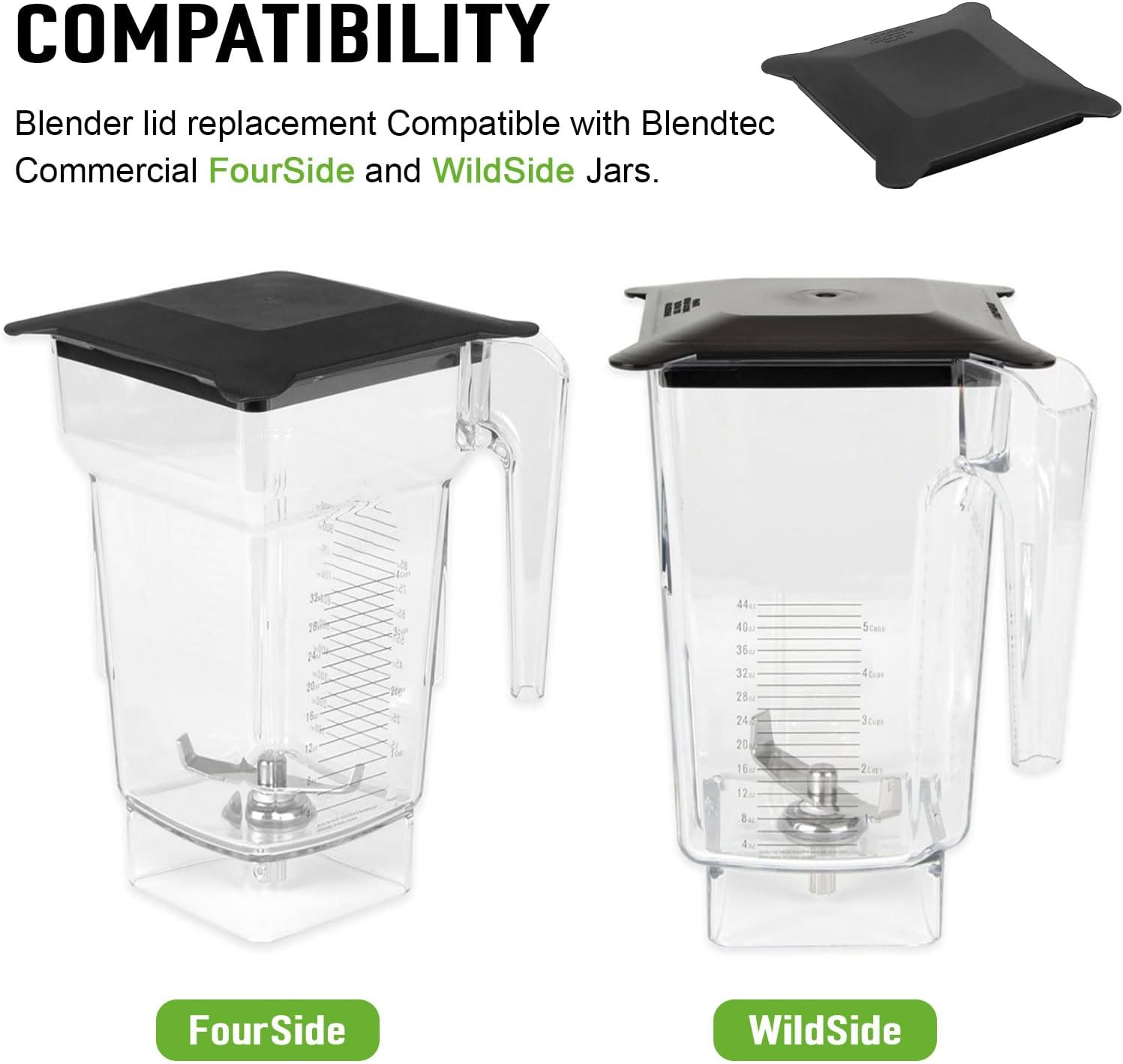 غطاء بديل لبرطمان الخلاط لخلاط بليندتيك التجاري وايلدسايد اند فورسايد، أغطية خلاط مطاطية ناعمة لا تحتوي على فتحات – تستخدم لمنع الملعقة أثناء المزج، أسود (قطعة واحدة)