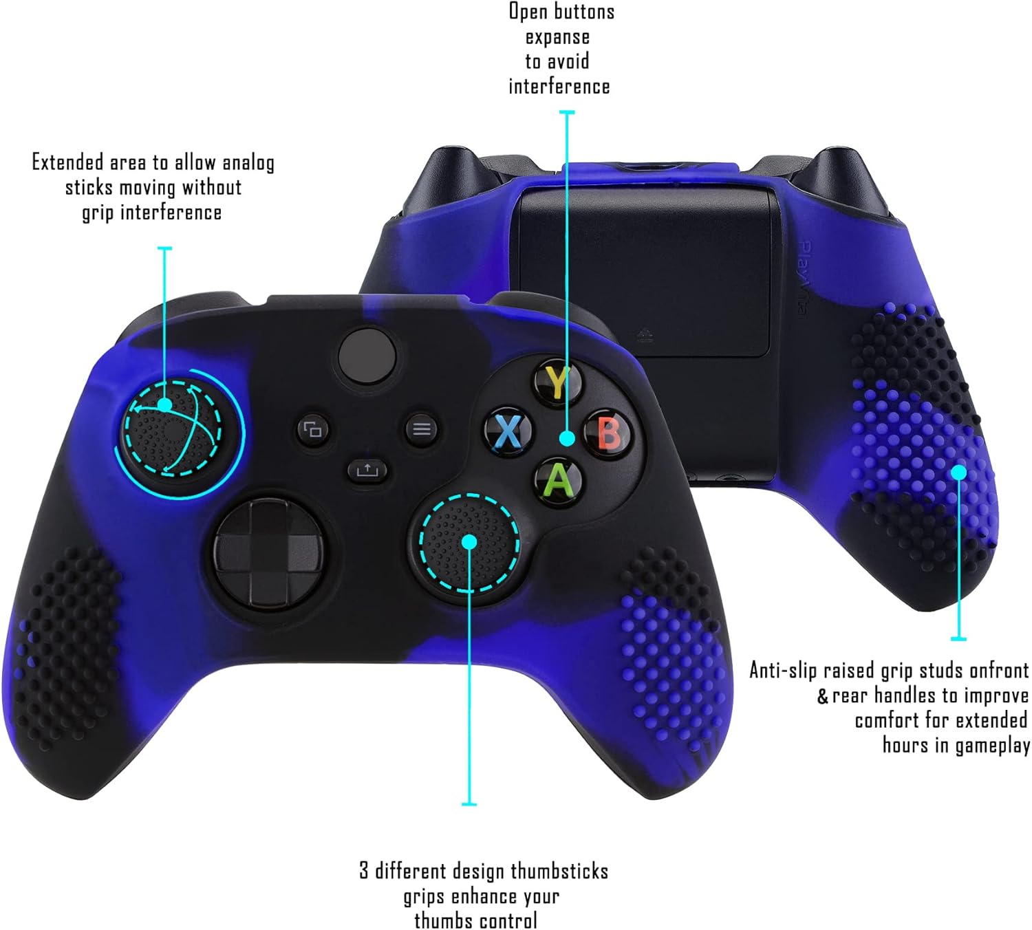 جراب سيليكون متين سهل التركيب والإزالة، ولن يؤثر على وظيفة وحدة التحكم بعد التركيب، ولن يعيق استخدام الأزرار والمنافذ. يرجى البحث عن “غطاء سيليكون بلاي فيتال لجهاز Xbox Series X/S” على يوتيوب للحصول على دليل التركيب