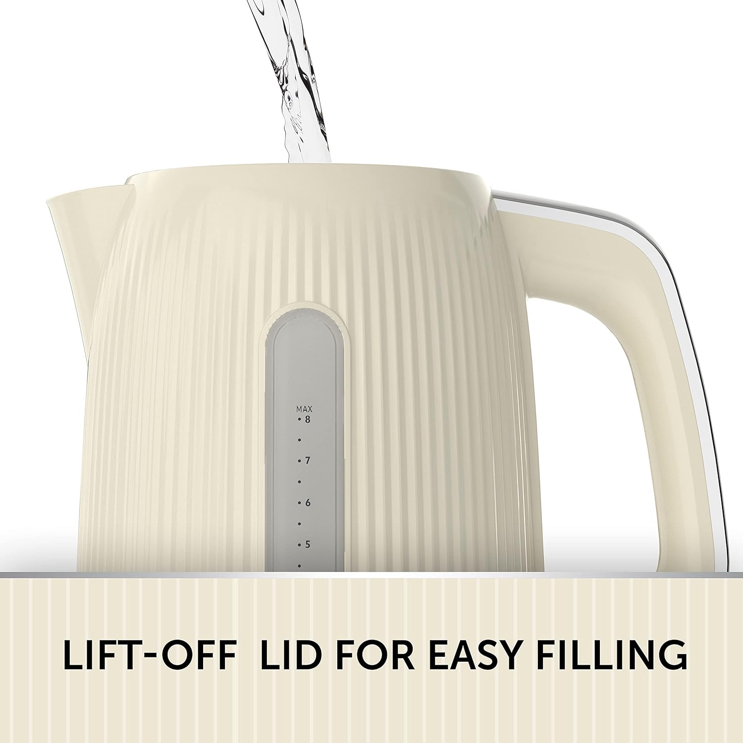 قاعدة دوارة 360 درجة وغطاء قابل للرفع وقواعد غير قابلة للانزلاق ومكان لتخزين للسلك. استكمل مجموعة الغلاية والمحمصة ذات اللون الكريمي الخاصة بك مع محمصة بولد المطابقة في الشكل
