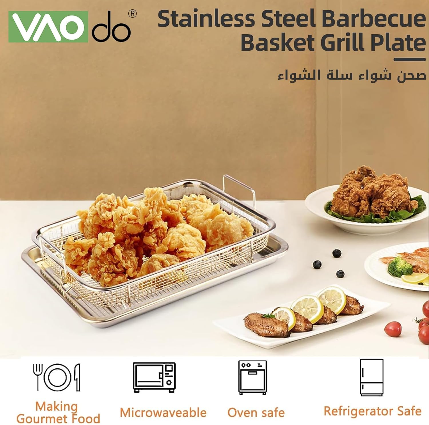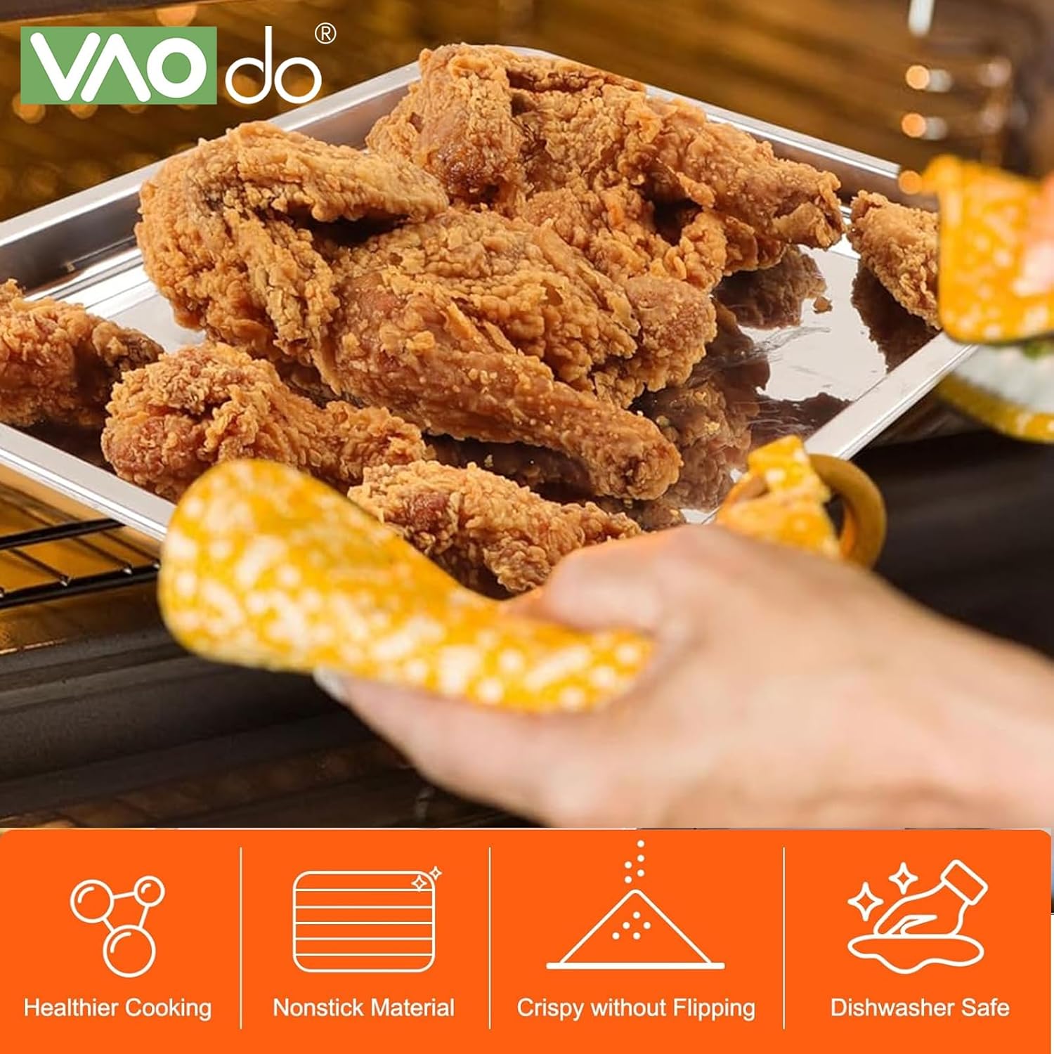 【أكل صحي】يساعدك التصميم الفريد لسلة وصينية المقلاة الهوائية للفرن على إزالة الزيت الزائد وتحقيق طهي صحي مع زيت أقل. إذا كنت ترغب في تقليل السعرات الحرارية، فهذا هو الخيار الأمثل لك.