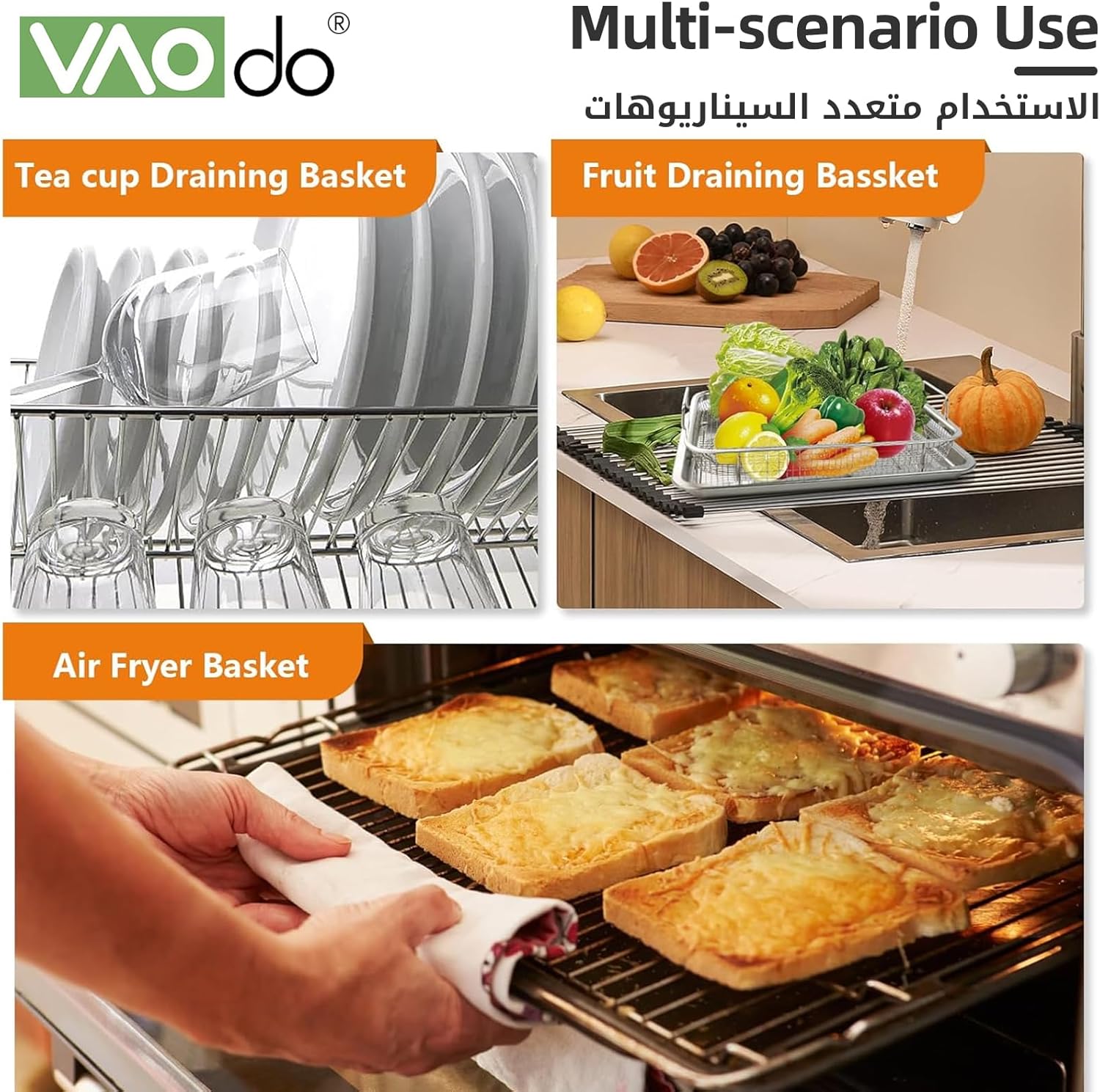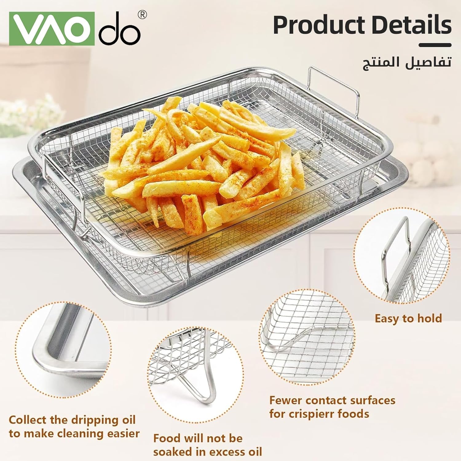 【مواد عالية الجودة】سلة المقلاة الهوائية وصينية الفرن مصنوعة من الستانلس ستيل عالي الجودة، وهو مقاوم لدرجات الحرارة العالية وليس من السهل ثنيه أو تشويهه، مما يضمن الاستخدام طويل الأمد دون خطر تقشير الطلاء. سلة المقلاة الهوائية للفرن مزودة بدعامات على كلا الجانبين لزيادة الثبات ومجهزة بمقابض لسهولة الإمساك.
