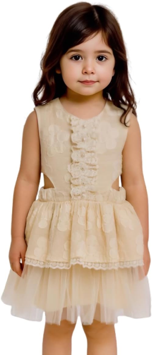اكتشفي الأناقة الخالدة مع فستان الحفلات الساحر هذا للبنات. يتميز الصدرية ذات اللون الكريمي بتطريز زهور رقيق في كل مكان، مما يخلق نمطًا راقيًا يلتقط الضوء بشكل جميل. يتضمن التصميم بدون أكمام فتحة خلفية ساحرة مع ربطة للإغلاق، مثالية لاحتفالات الطقس الدافئ. يُظهر الفستان براعة رائعة بفضل تصميمه متعدد الطبقات – حيث يؤدي الخصر المجمع إلى طبقة خارجية جميلة على شكل بيبلوم مزينة بحواف من الدانتيل الأبيض النقي، بينما تضيف التنورة الداخلية من التول الحالمة الحجم والحركة. توفر الفتحات الجانبية عند الخصر لمسة عصرية لهذا التصميم الكلاسيكي. مزيج من الصدرية المنظمة والتنورة المتدفقة يخلق مظهرًا متوازنًا ورشيقًا مثاليًا للمناسبات الخاصة أو الحفلات أو المناسبات الرسمية. لوحة الألوان الكريمية المحايدة للفستان تجعله متعدد الاستخدامات لمختلف الاحتفالات، بينما يضمن هيكله عالي الجودة الراحة طوال اليوم. عناصر التصميم المدروسة والمواد الممتازة تجعل هذا الفستان خيارًا رائعًا للحظة الخاصة لأي فتاة صغيرة.