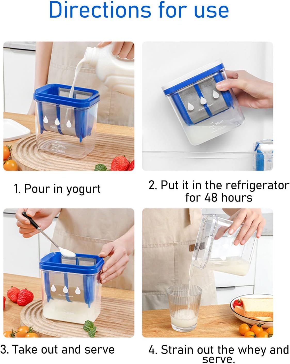 【شاشة شبكية دقيقة】فاصل مصل اللبن مصنوع من مواد متينة وعالية الجودة، 80 شبكة فلتر دقيقة من الستانلس ستيل، تصفية البقايا بسهولة. مصمم لترشيح الزبادي بفعالية، مما يضمن ملمسًا ناعمًا وكريميًا بدون أي كتل أو شوائب.