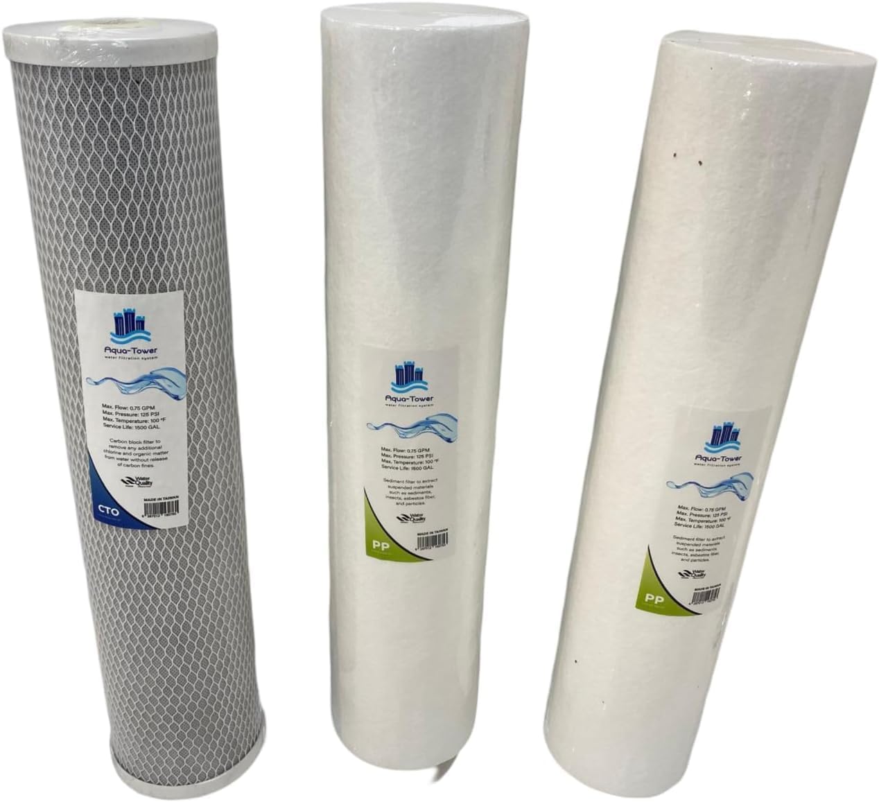 فلتر ٣ مراحل لمحطة تحلية جامبو للخزان تتضمن ٢ فلتر من البولي بروبيلين وفلتر من كتلة الكربون يزيل ما يصل الى ٩٩٪ من الملوثات بما في ذلك الرصاص والفلورايد و الزرنيخ والبكتيريا والمعادن الثقيلة