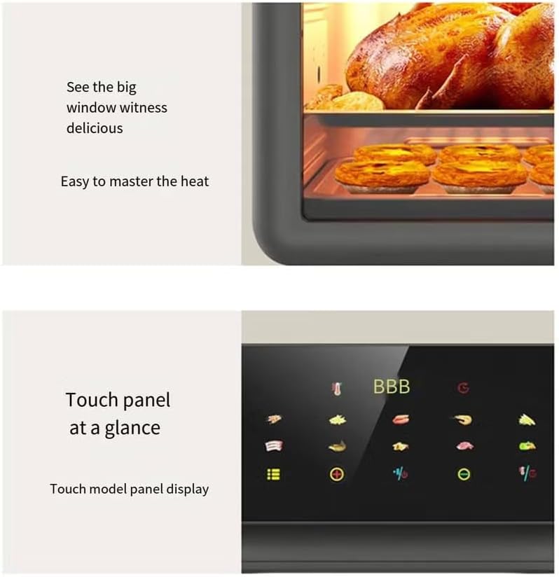 برامج طهي متعددة: تأتي مع 6 برامج مسبقة الضبط تشمل البطاطس المقلية (18 دقيقة/200 درجة)، الدجاج (20 دقيقة/200 درجة)، الكيك (25 دقيقة/160 درجة)، السمك (10 دقائق/180 درجة)، اللحوم (12 دقيقة/180 درجة)، والجمبري (8 دقائق/180 درجة)