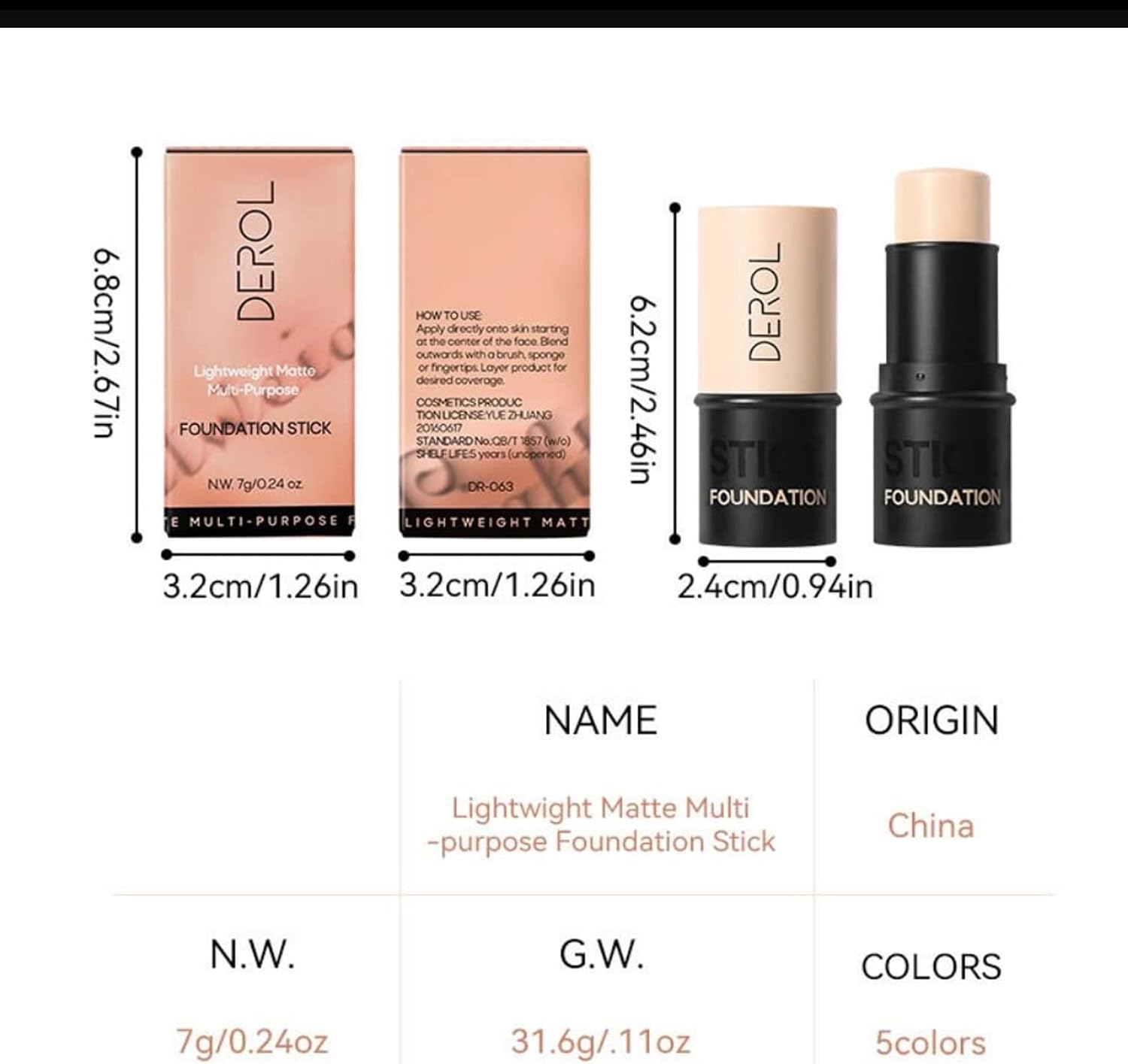 لجميع أنواع البشرة، قضبان ديرول صغيرة وسهلة الحمل. من السهل حملها ووضع مكياجك وقتما تريدين.
