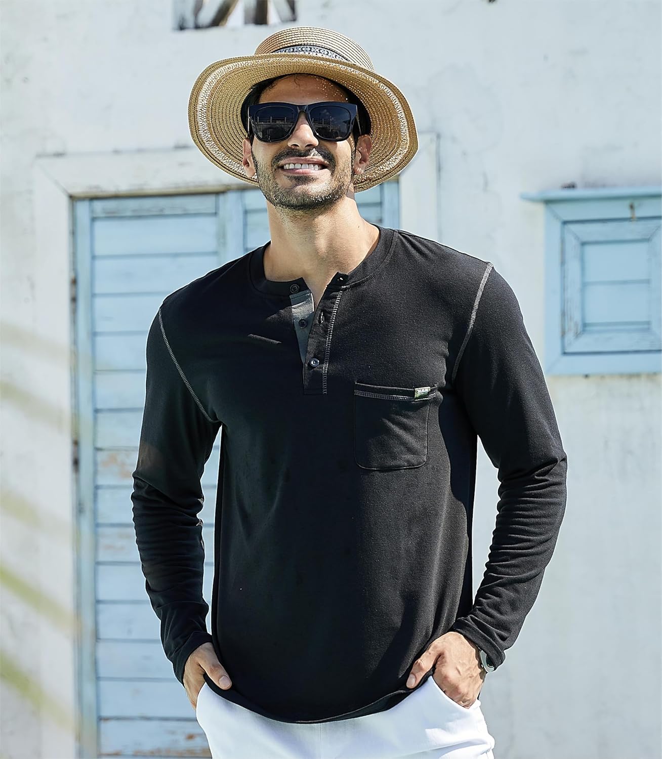 شراء قمصان هينلي للرجال من كيكوما باكمام طويلة/قصيرة كاجوال من القطن بازرار وجيب وياقة هينلي مع زر امامي اون لاين من امازون او نون وحراج قمصان هينلي للرجال من كيكوما باكمام طويلة/قصيرة كاجوال من القطن بازرار وجيب وياقة هينلي مع زر امامي