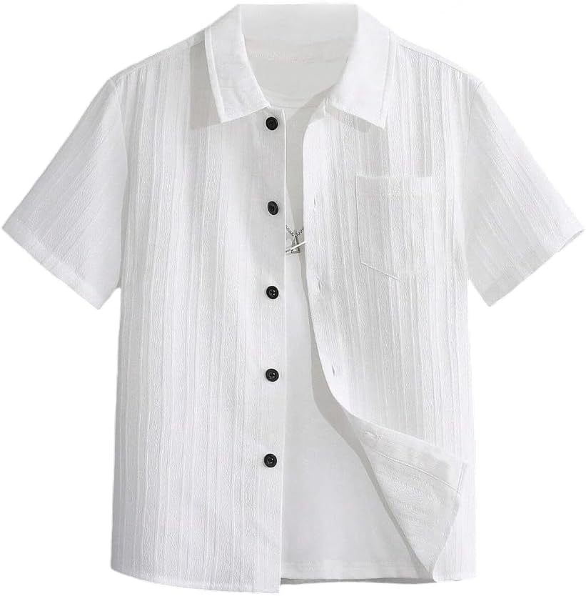 قميص مصنوع من مادة القطن والبوليستر مع طباعة رقمية لقميص بنمط الغابات الاستوائية بأكمام قصيرة ومناسب لأي موسم