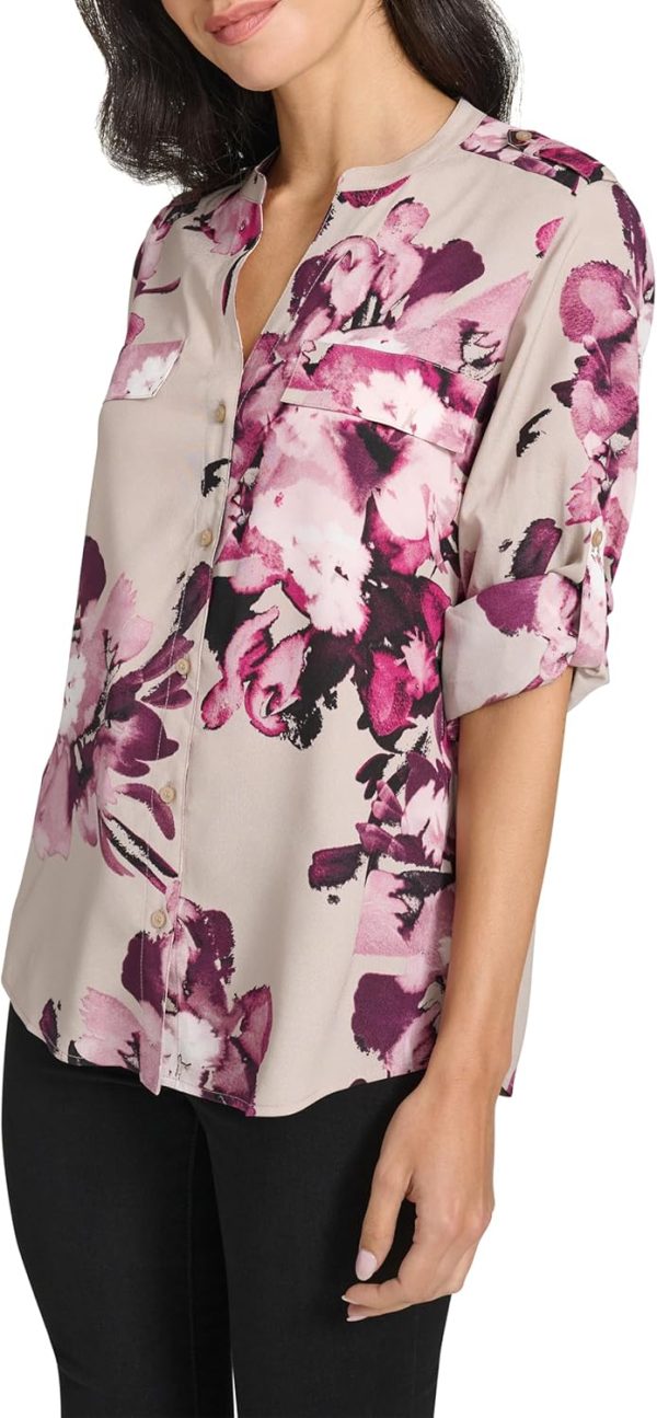 كالفن كلاين بلوزة نسائية باكمام طويلة وازرار امامية ملفوفة واكمام (عبوة من قطعة واحدة)