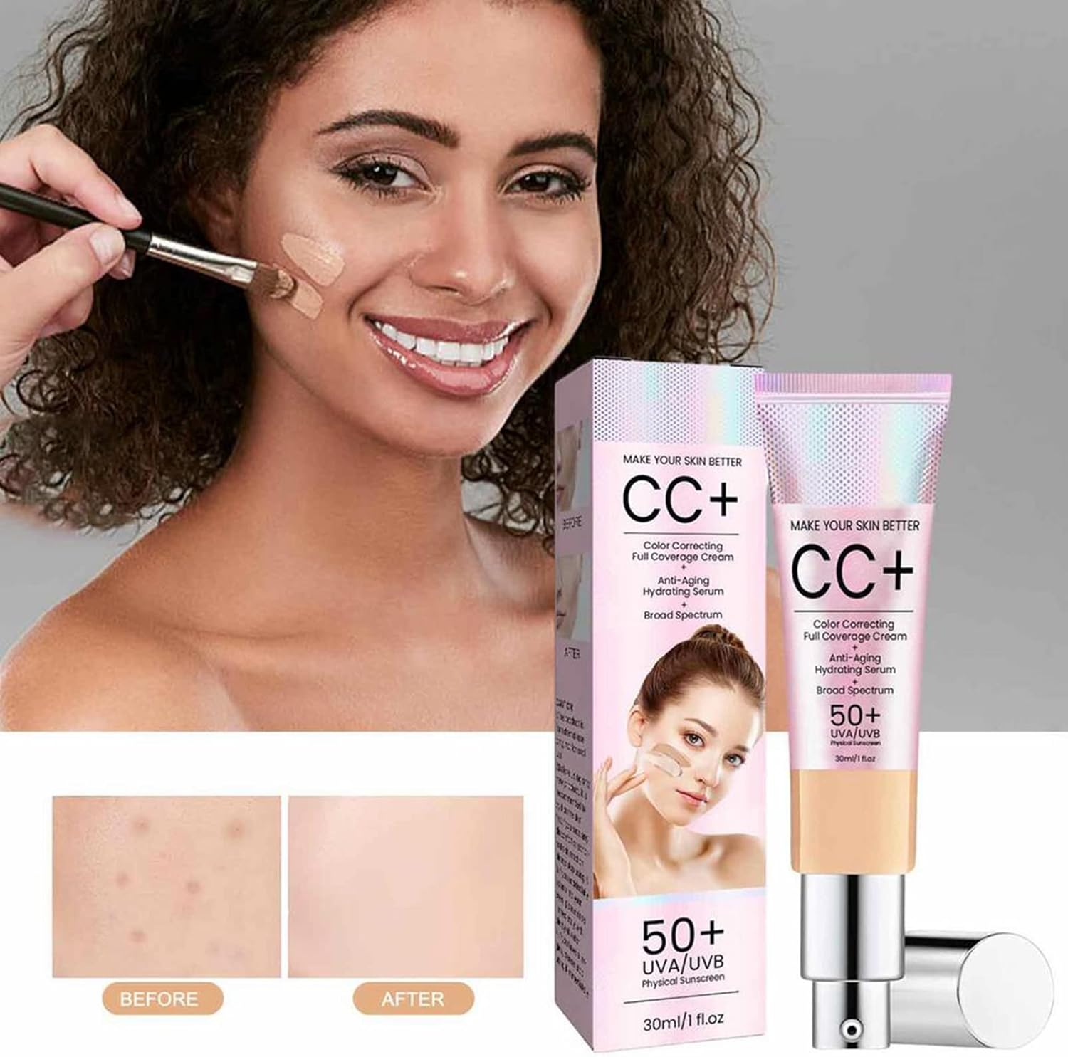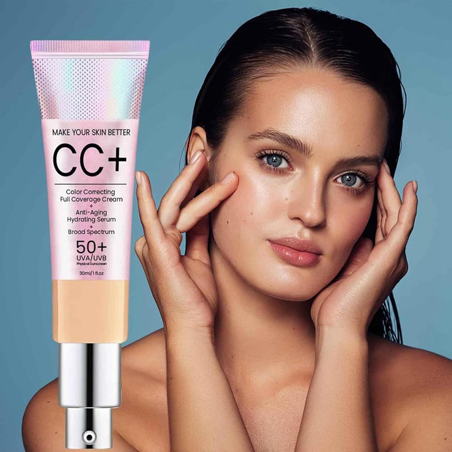 【كريم سي سي لضبط لون البشرة】: متعدد الأغراض، تصحيح اللون، مرطب، قاعدة وكريم أساس. يخفي العيوب مثل الاحمرار والمسام مع توفير لون بشرة متساوٍ تمامًا ولمسة نهائية غير ثقيلة