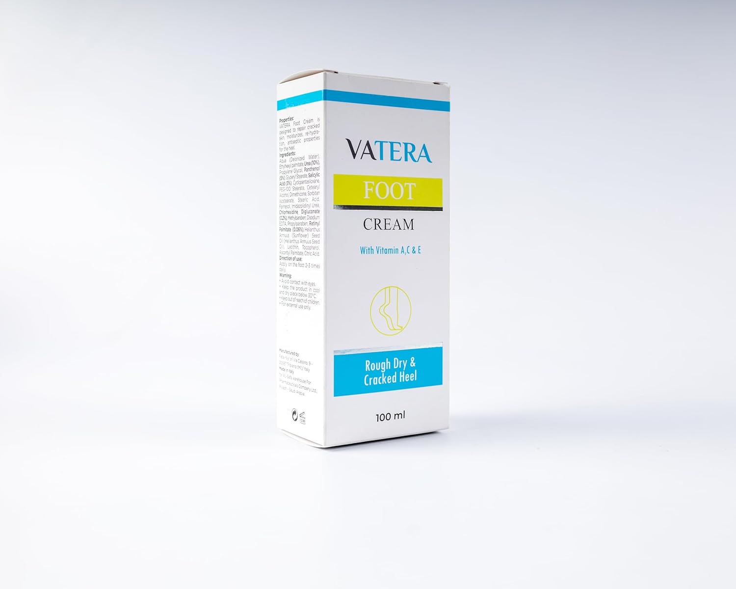 كريم القدم من فاتيرا يرطب ويغذي القدمين الجافة والمتشققة. يعزز ويزيد من رطوبة قدميك ويساعد على تجديد بشرة قدميك والتخلص من الخلايا الجلد الميتة. يوفر الترطيب اليومي الضروري ويغذي البشرة للحصول على بشرة أكثر نعومة وإشراقًا. غني بالفيتامينات المهمة التي تجدد البشرة وترطبها بعمق.