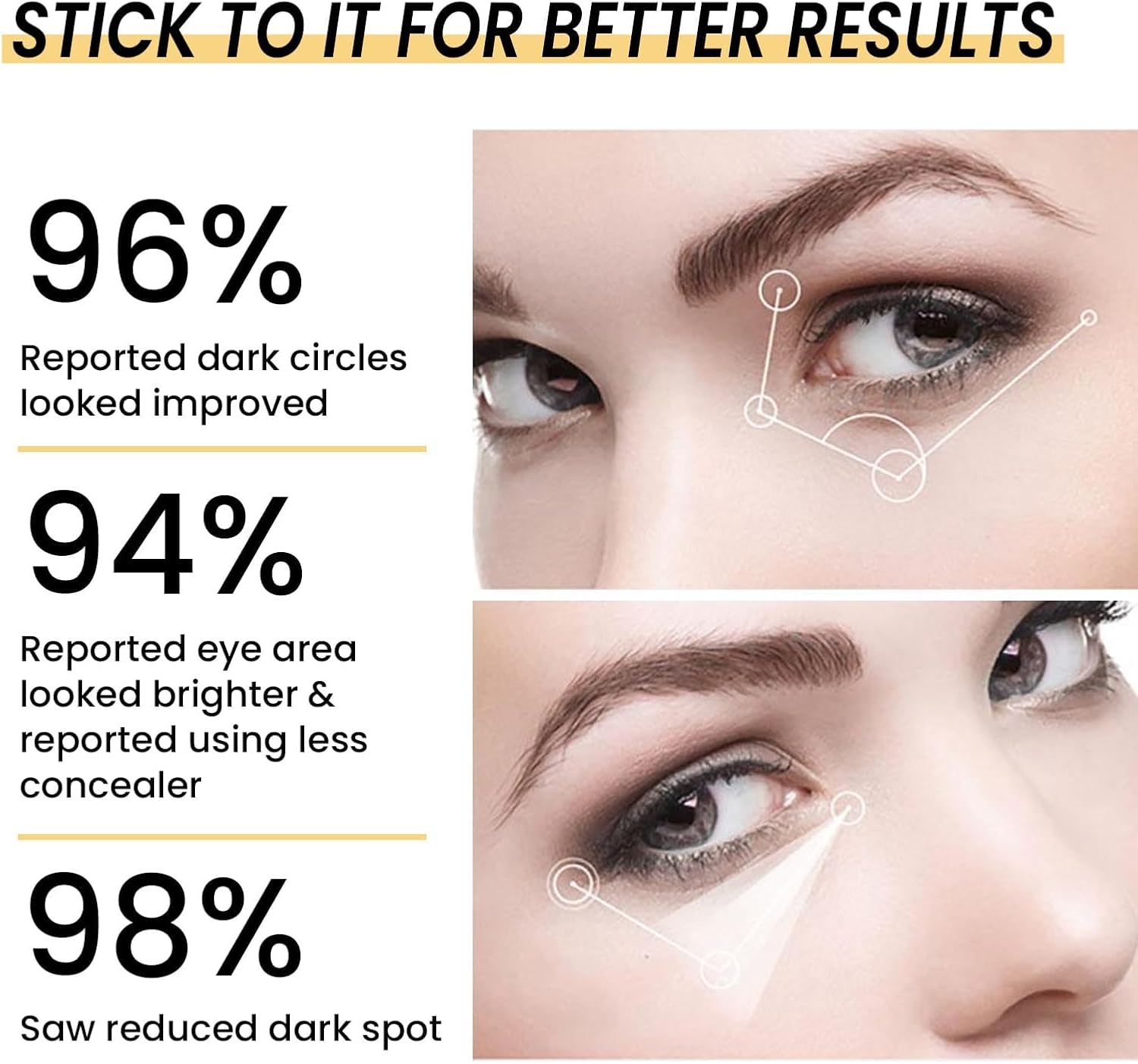 🌟 نصيحة الاستخدام: إذا لاحظت أي بقايا بيضاء بعد وضع كريم العين، ما عليك سوى ترطيب مسحة قطنية أو طرف أصابعك، ثم ضعيها بلطف حول المنطقة المصابة لإزالة المنتج الزائد.