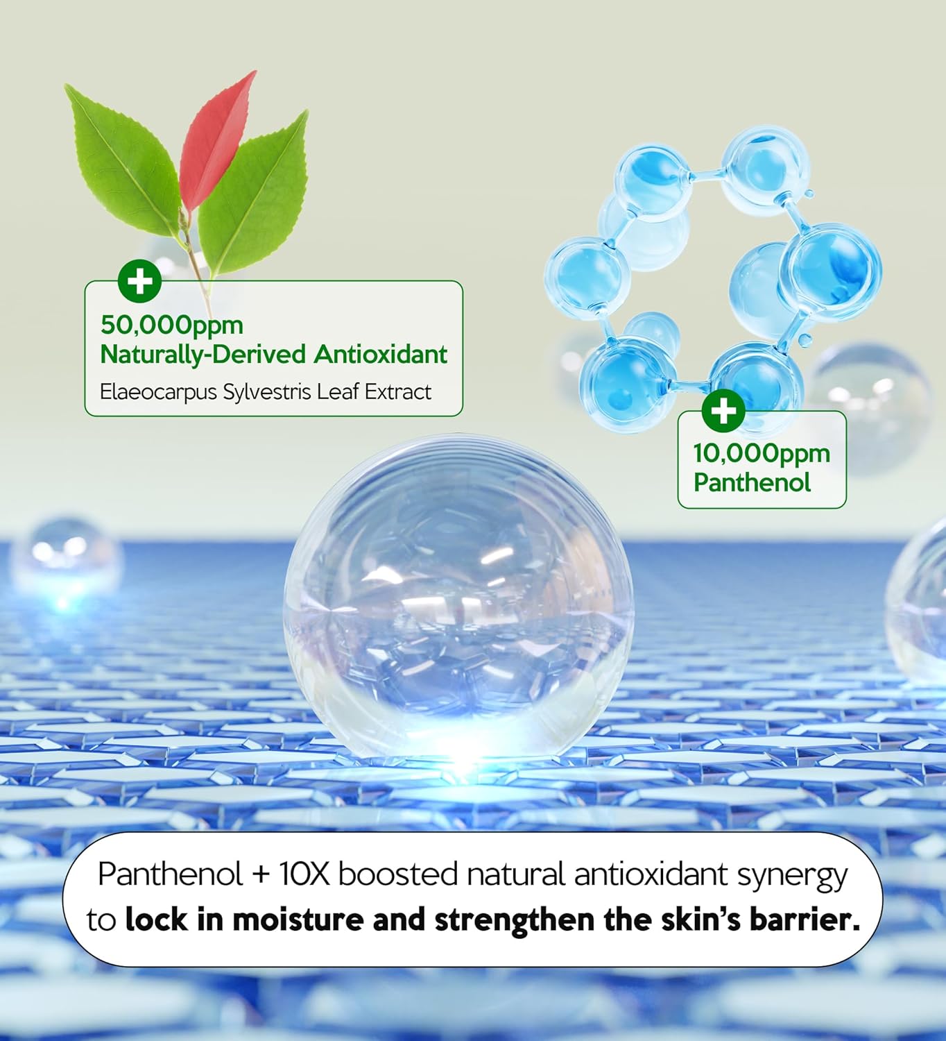 مغناطيس بانثينول للرطوبة. غني بفوائد مهدئة، يتحول مرطب الوجه هذا للنساء والرجال إلى فيتامين B5 عند امتصاصه من الجلد. مع 10000 جزء في المليون من البانثينول، كريم الوجه الكوري الخاص بنا يرطب ويقوي رطوبة بشرتك.