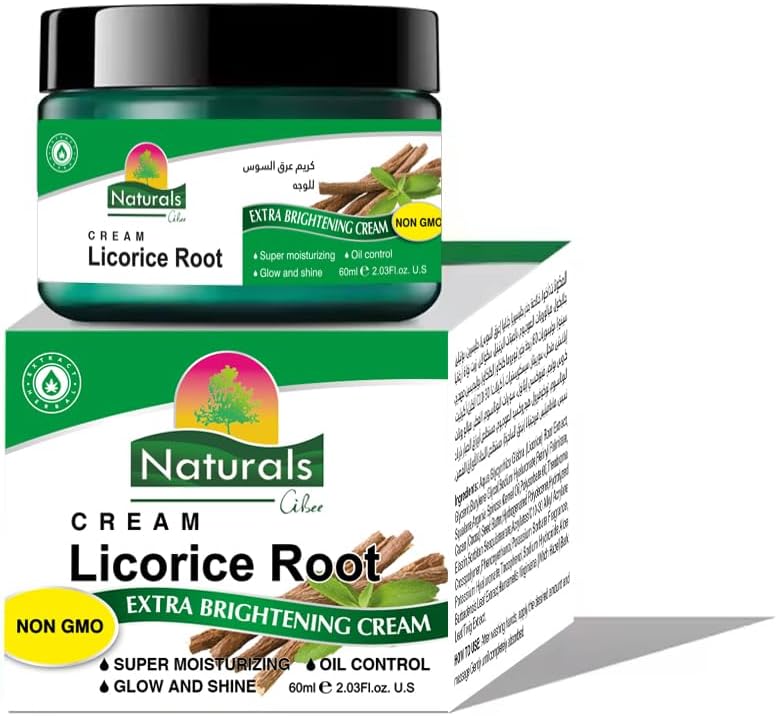 تفتيح البشرة: تعمل خلاصة عرق السوس على تفتيح لون البشرة بشكل طبيعي وتوحيد لونها، مما يقلل من ظهور البقع الداكنة والتصبغات.