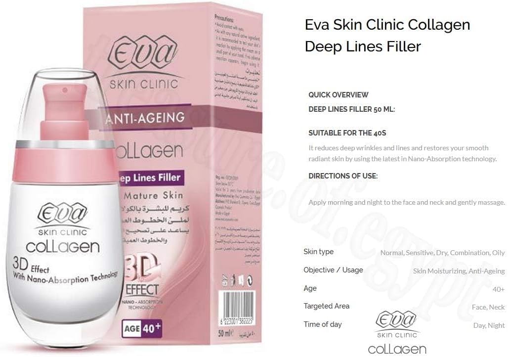 كريم حشو كولاجين ديب لاينز من ايفا سكين كلينك بتأثير ثلاثي الأبعاد 50 مل، تعليمات الاستخدام: – ضعيه صباحًا ومساءً على الوجه والرقبة ودلكيه بلطف. الاحتياطات: – للاستخدام الخارجي فقط. – كما هو الحال مع أي مكون نشط طبيعي، يوصى باختبار تفاعل بشرتك عن طريق وضع المنتج على جزء صغير من يدك. صنع في: مصر بواسطة ايفا كزوميتيكس co.